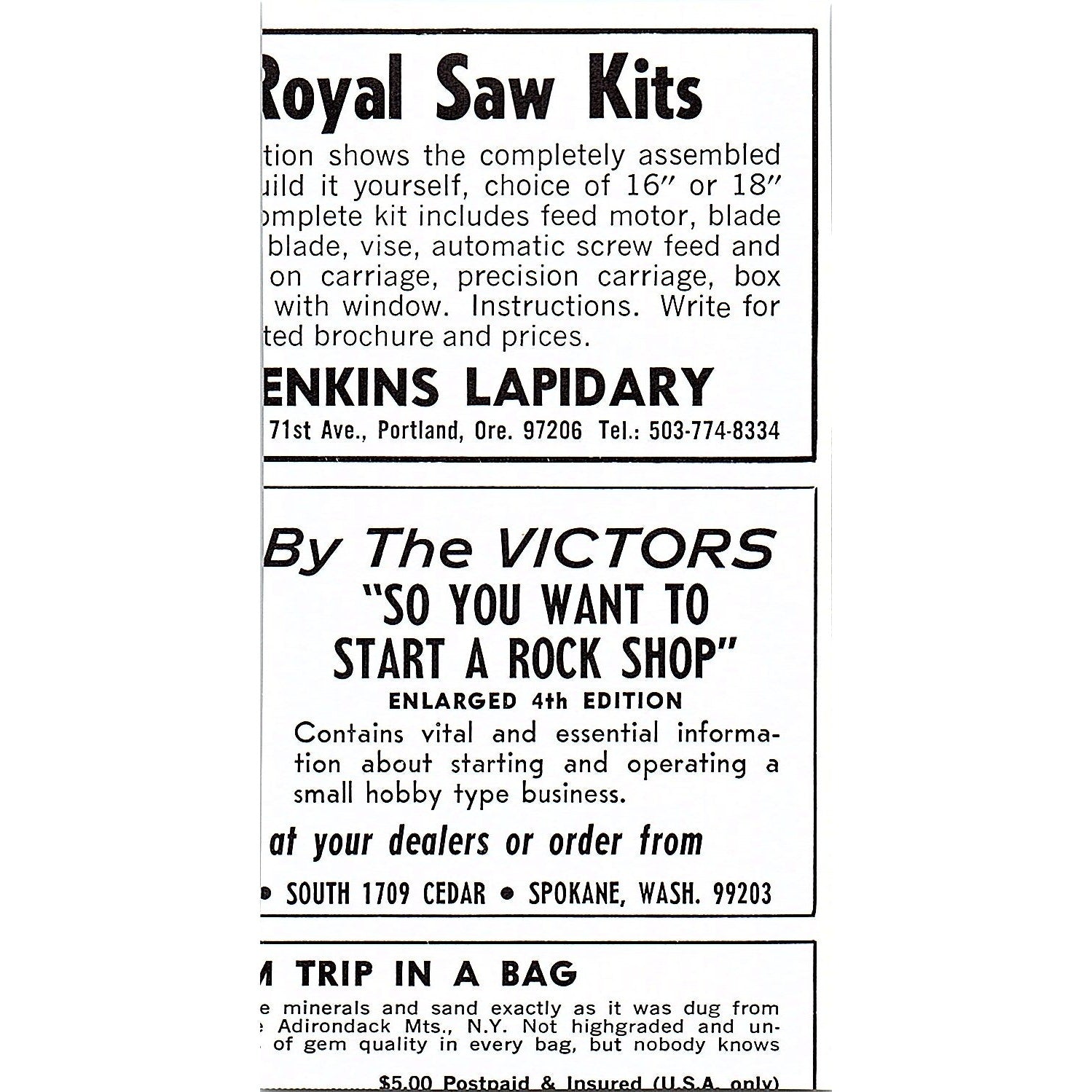 Measures approx 2.5x5". This is a SMALL Ad, size is approximate. Original piece taken from a 1972 Lapidary Journal magazine. Has regular wear and tear you would expect from a piece this age. See pics for condition.