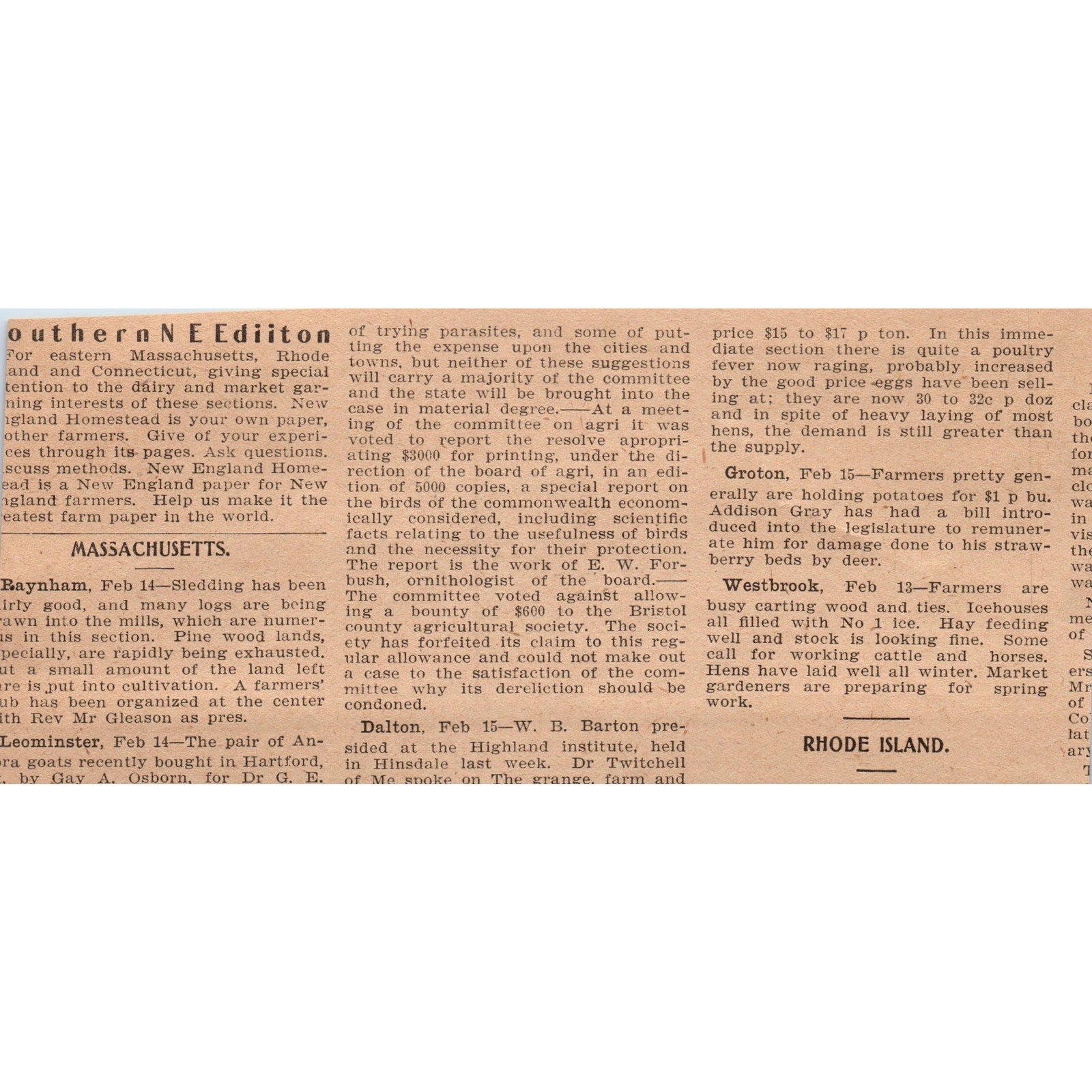 This is a SMALL ad, measuring approx 4x6". Original piece pulled from Feb 18, 1905 New England Homestead Magazine. There may be some light staining, tears, and/or other signs of wear and tear. See pics for condition.