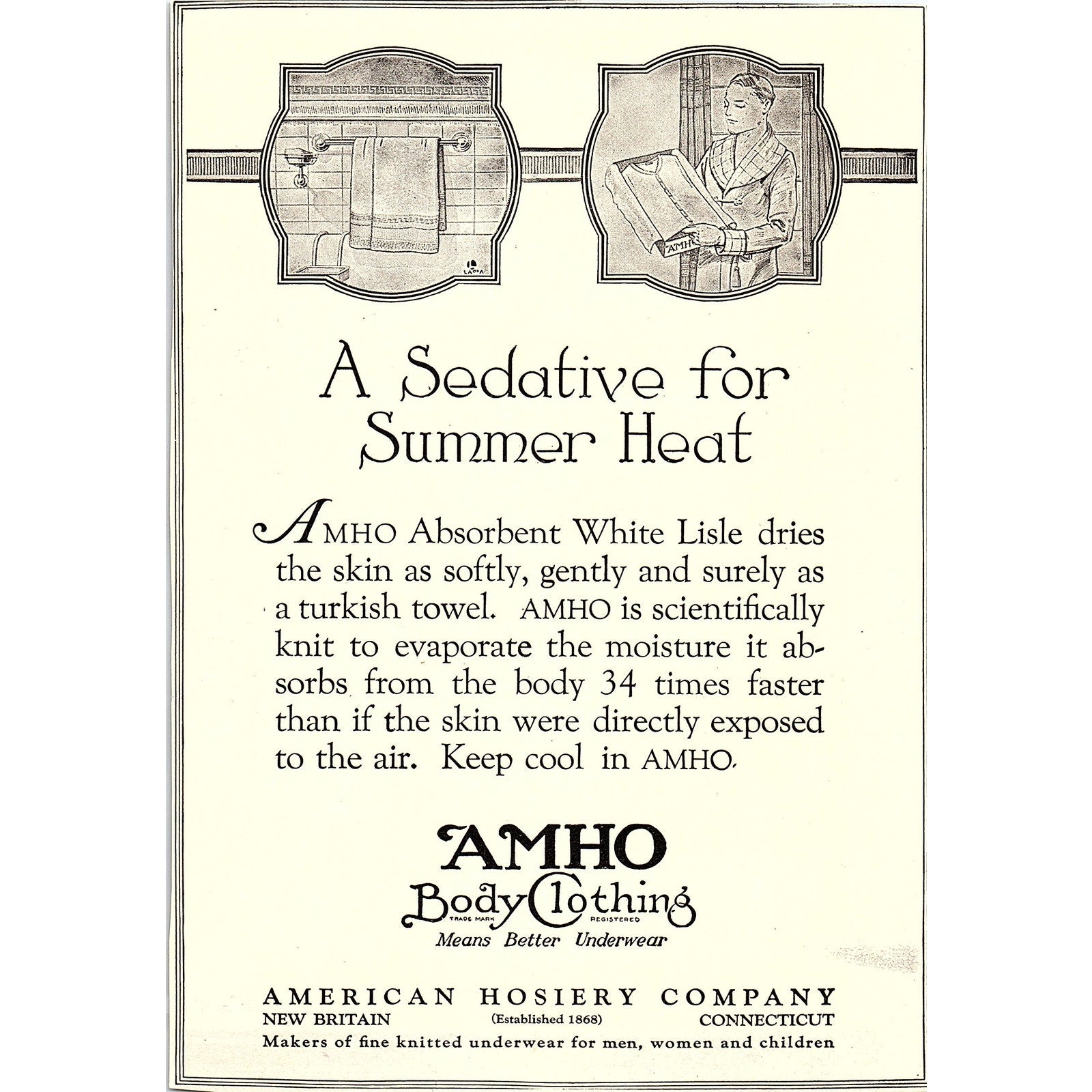 AMHO Body Clothing White Lisle American Hosiery Co New Britain CT c1920 Ad AF8-8