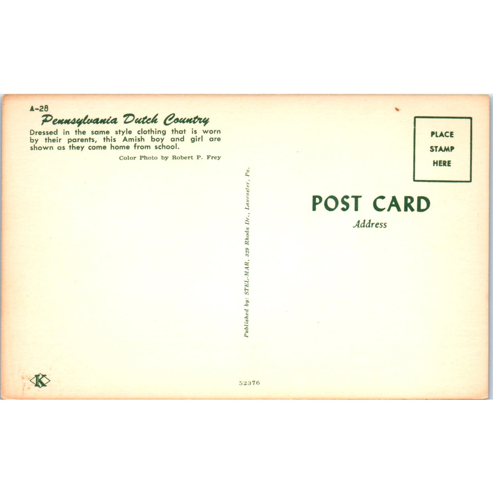 Amish Boy and Girl Dressed in School Clothing PA Dutch Vintage Postcard PD4