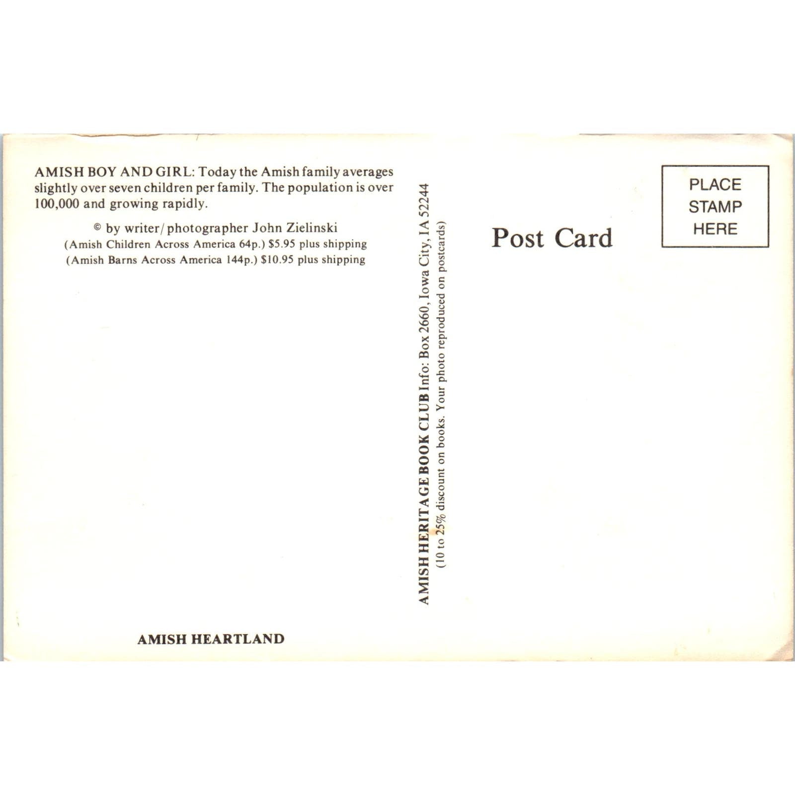 Amish Boy and Girl Pennsylvania Dutch Country Postcard PD7