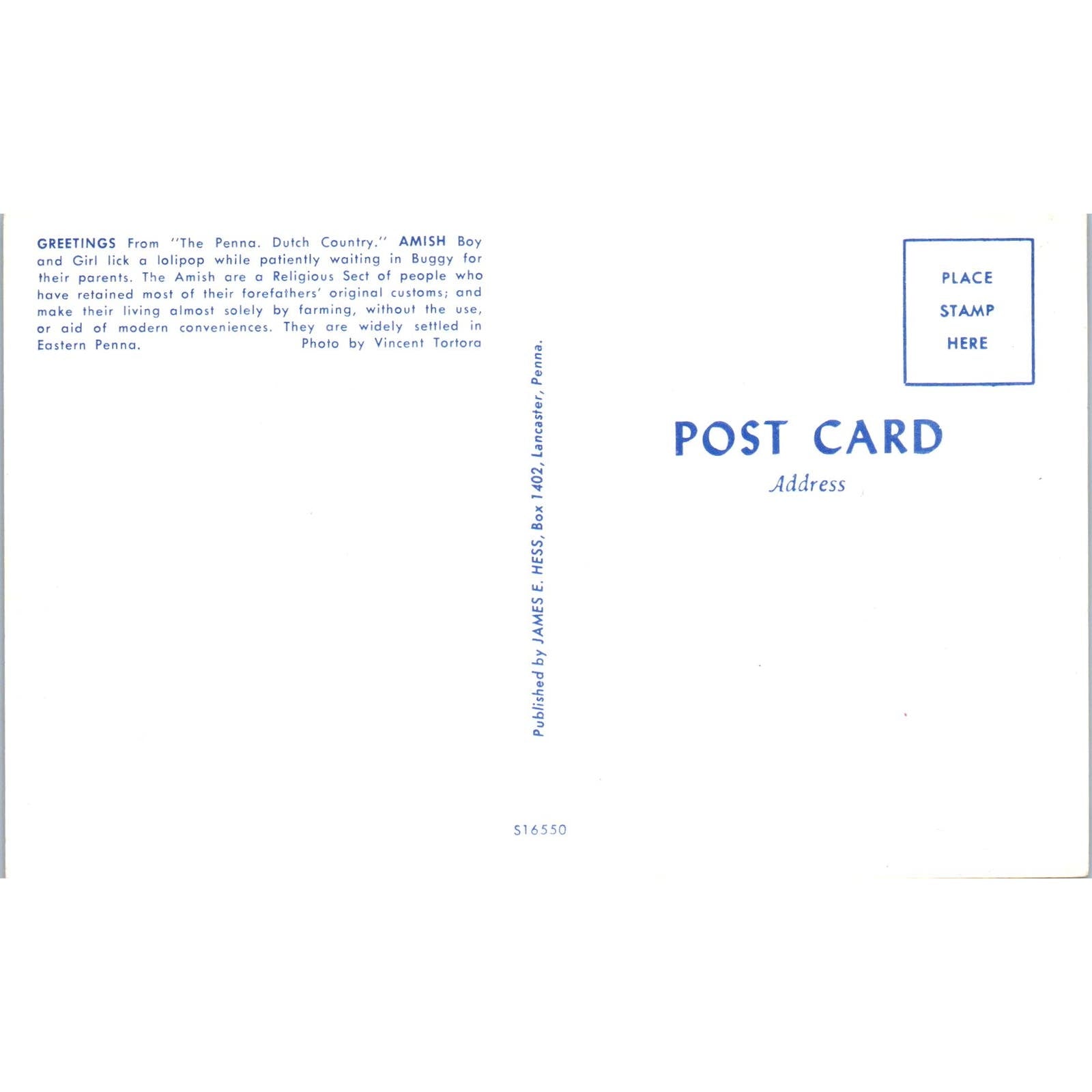 Amish Boy & Girl Lick a Lollipop Pennsylvania Dutch Country Vintage Postcard PD5