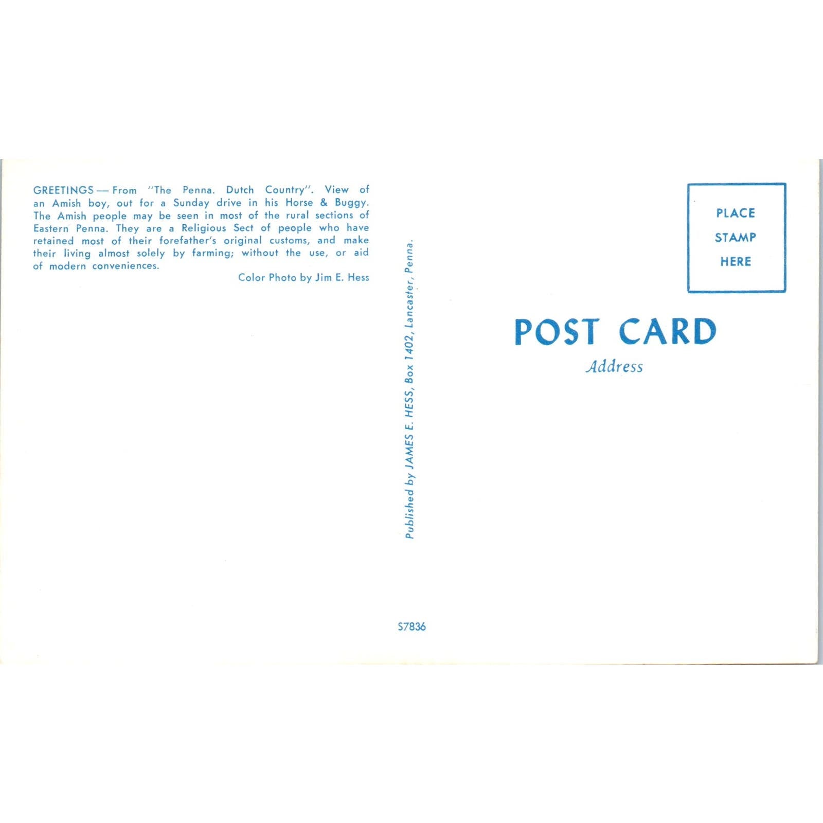 Amish Boy in Horse and Buggy Pennsylvania Dutch Country Postcard PD8
