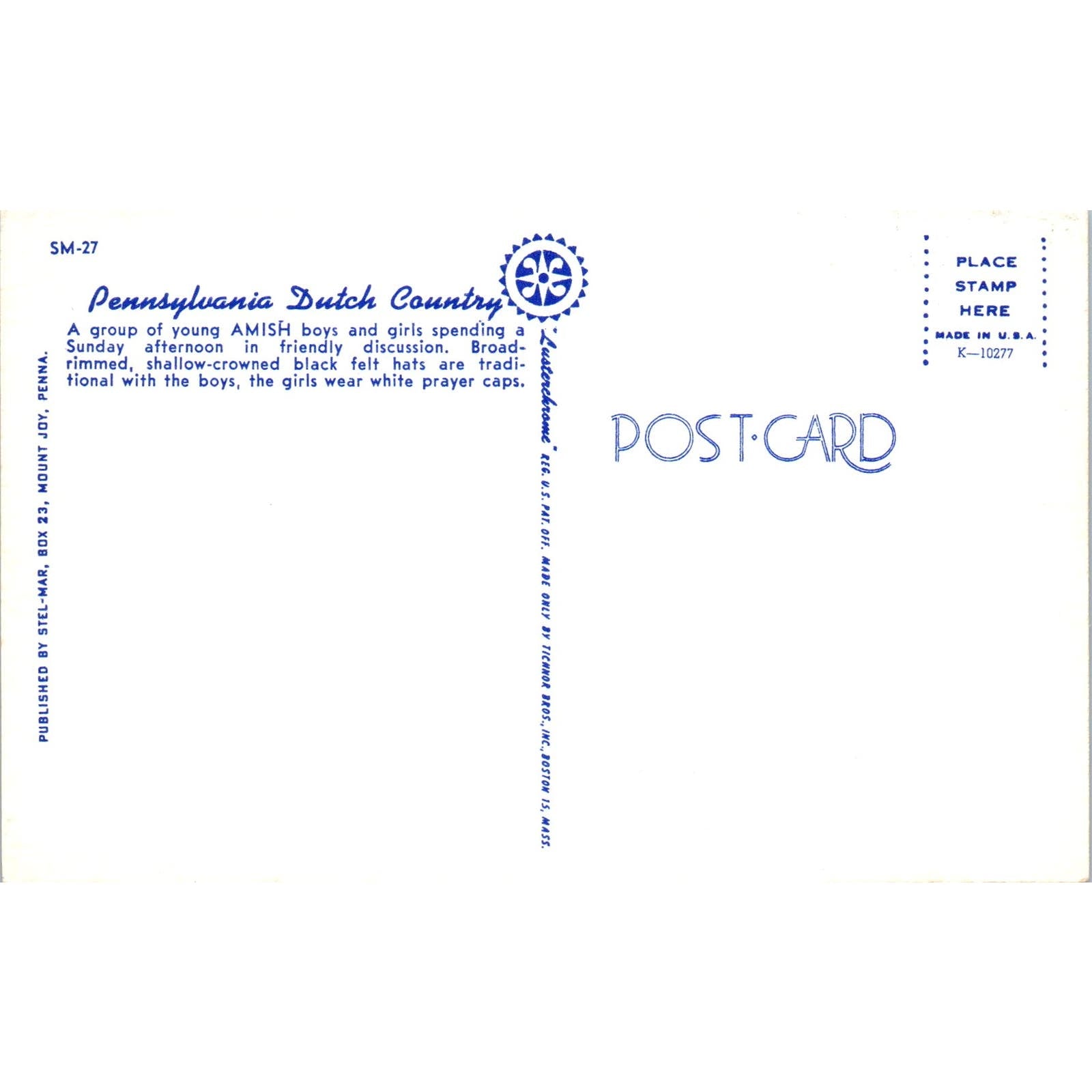 Amish Boys and Girls Conversing Pennsylvania Dutch Country Vintage Postcard PD4