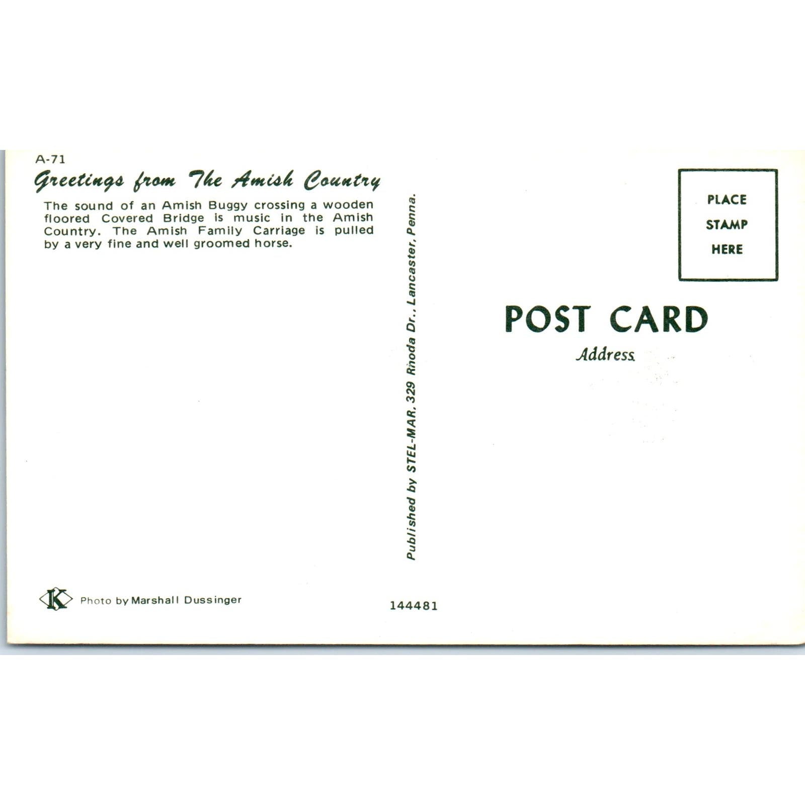 Amish Buggy Crossing a Covered Bridge PA Vintage Covered Bridge Postcard PD6