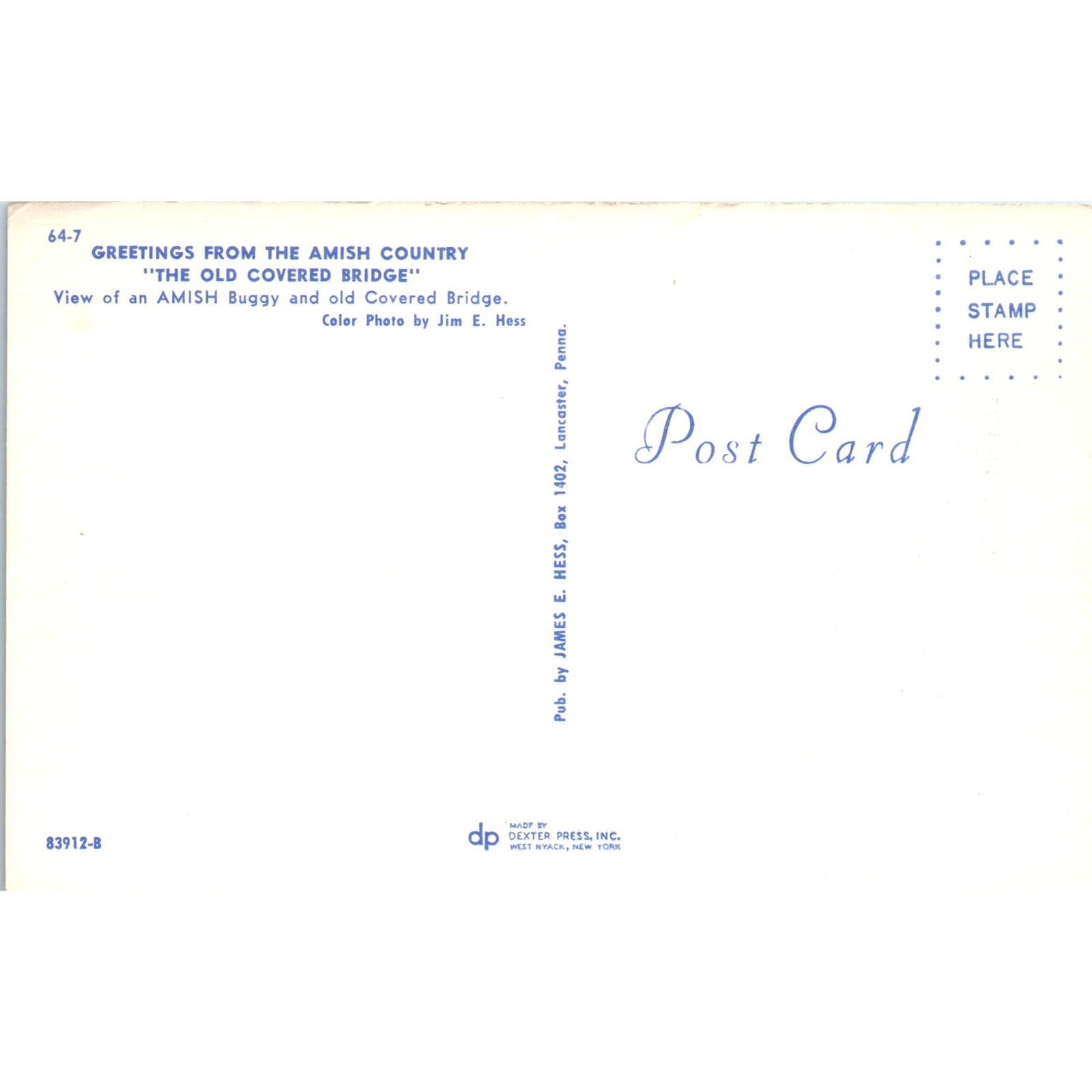 Amish Buggy & Old Covered Bridge Pennsylvania Dutch Country Postcard PD7