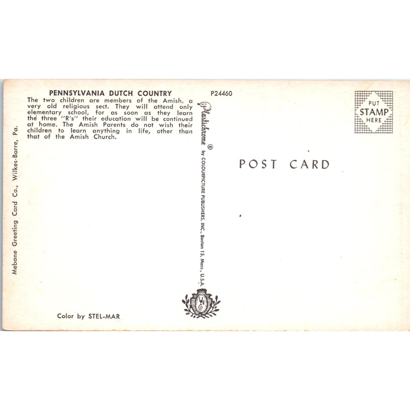 Amish Children in Pennsylvania Dutch Country Vintage Postcard PD4