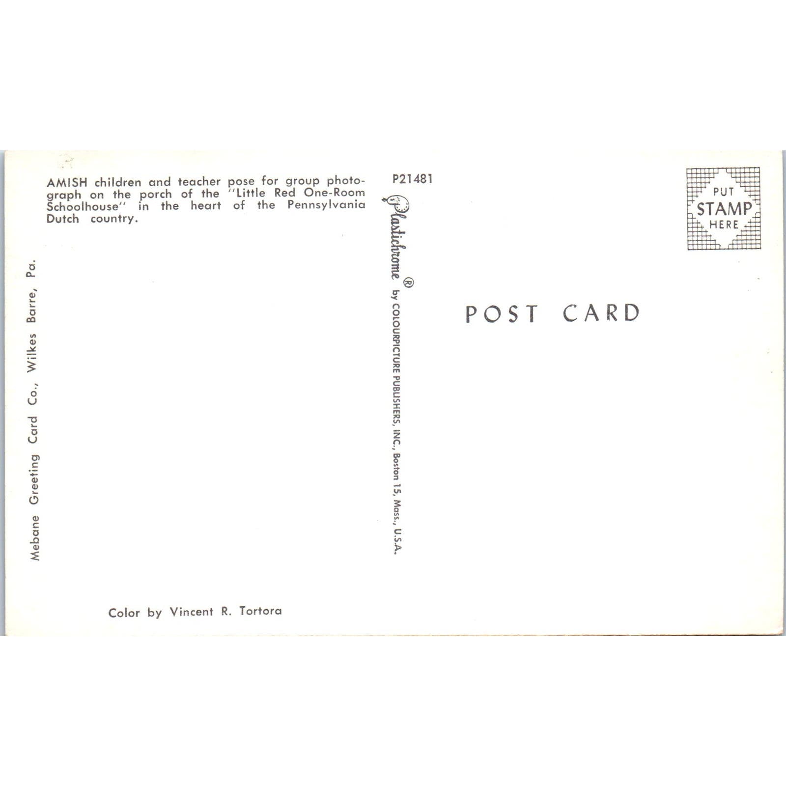 Amish Children & Teacher Red Schoolhouse Pennsylvania Dutch Country Postcard PD8