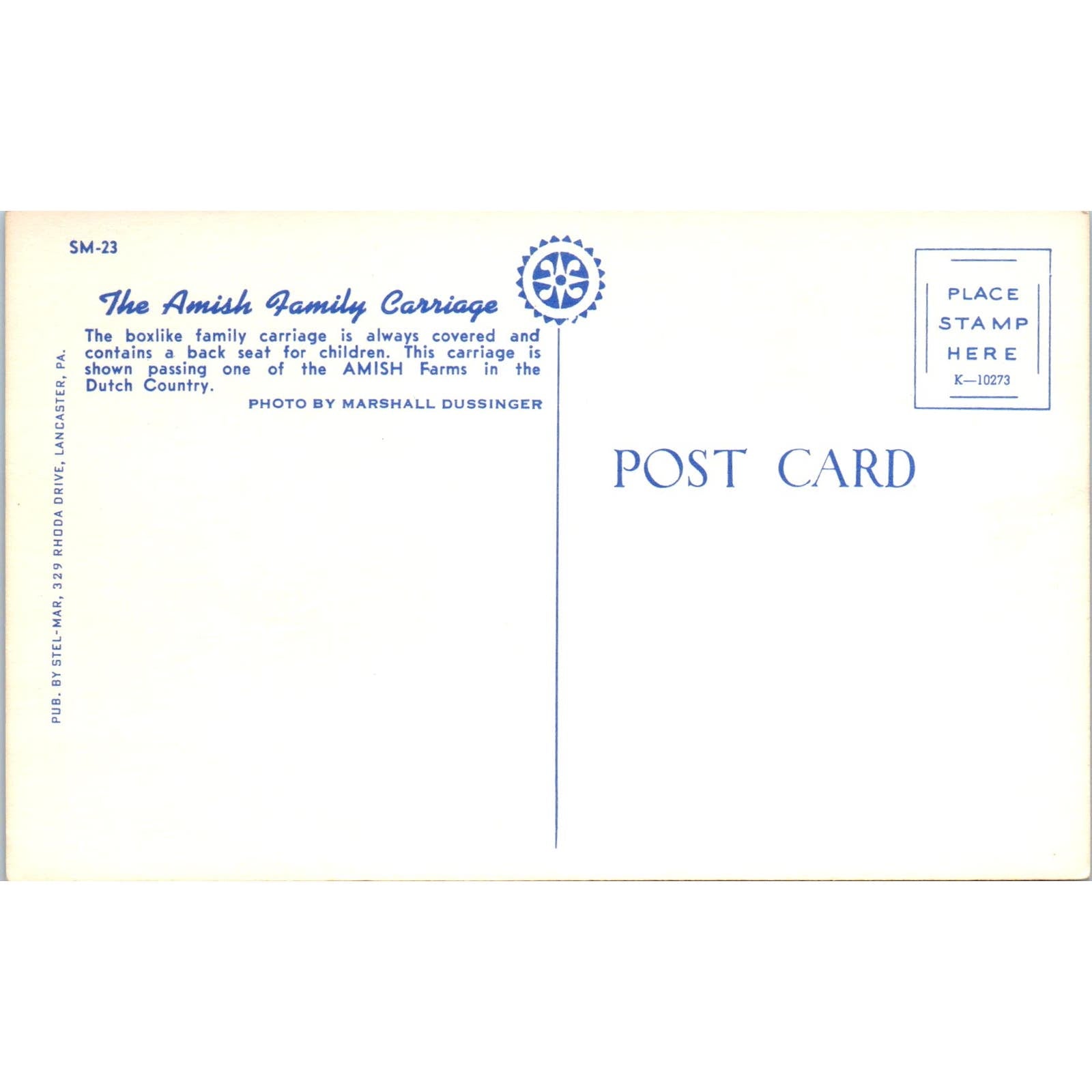 Amish Covered Family Carriage Pennsylvania Dutch Country Postcard PD8