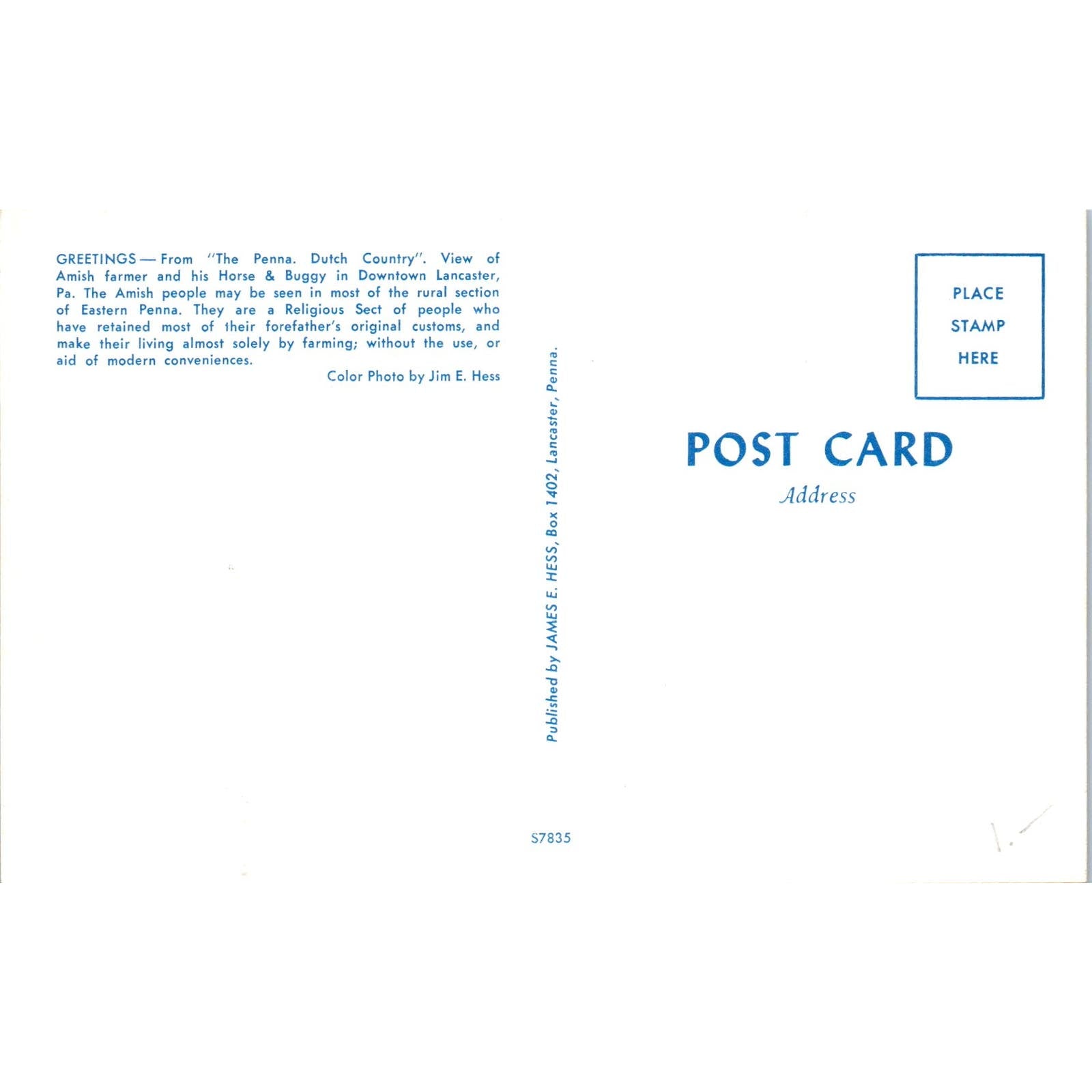 Amish Farmer Buggy in Lancaster Pennsylvania Dutch Country Vintage Postcard PD5