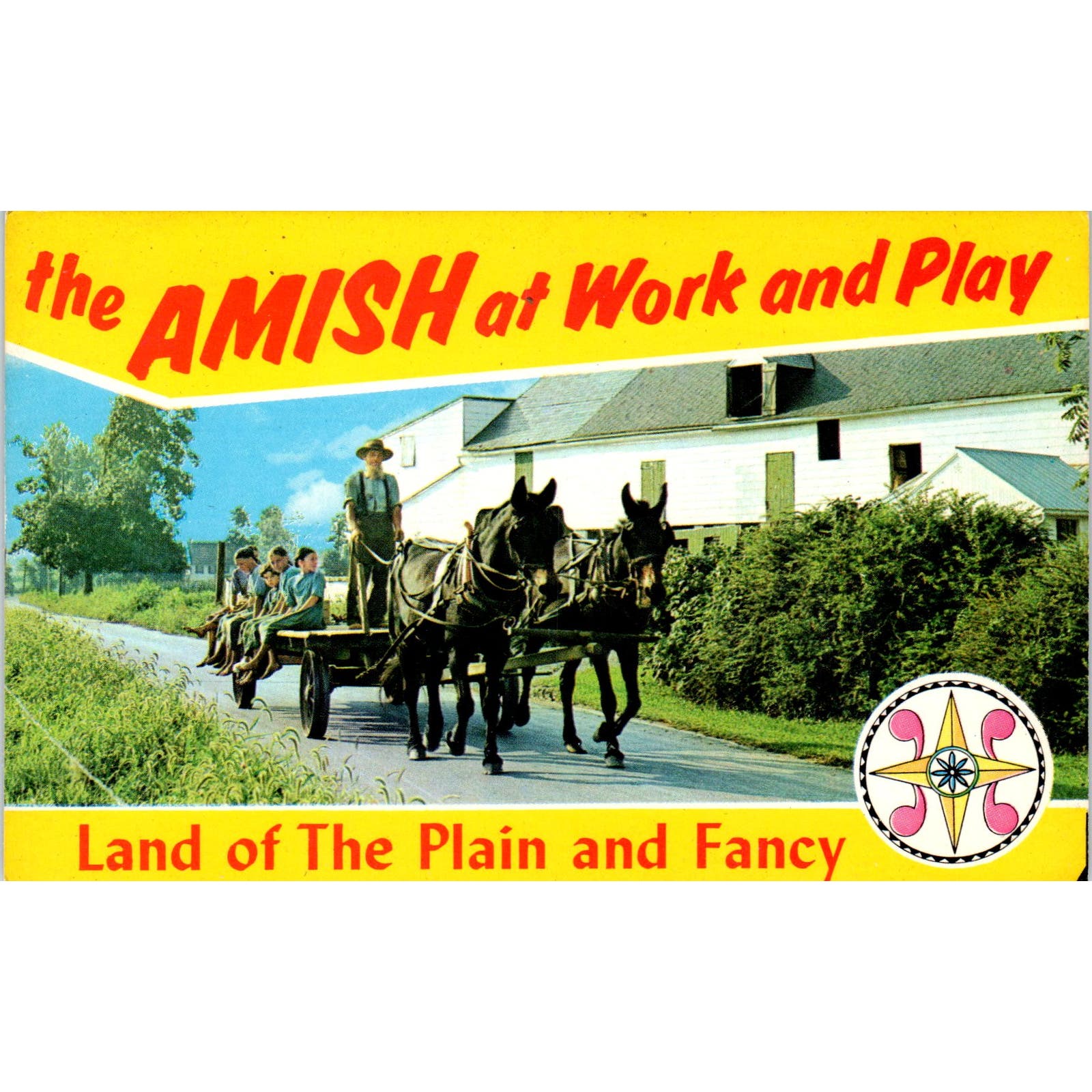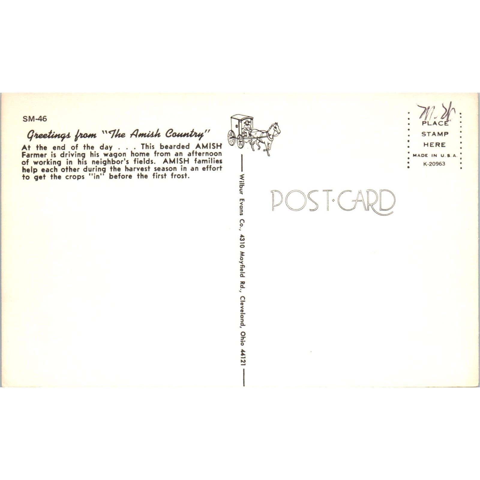 Amish Farmer Driving His Wagon Home Pennsylvania Dutch Country Postcard PD8
