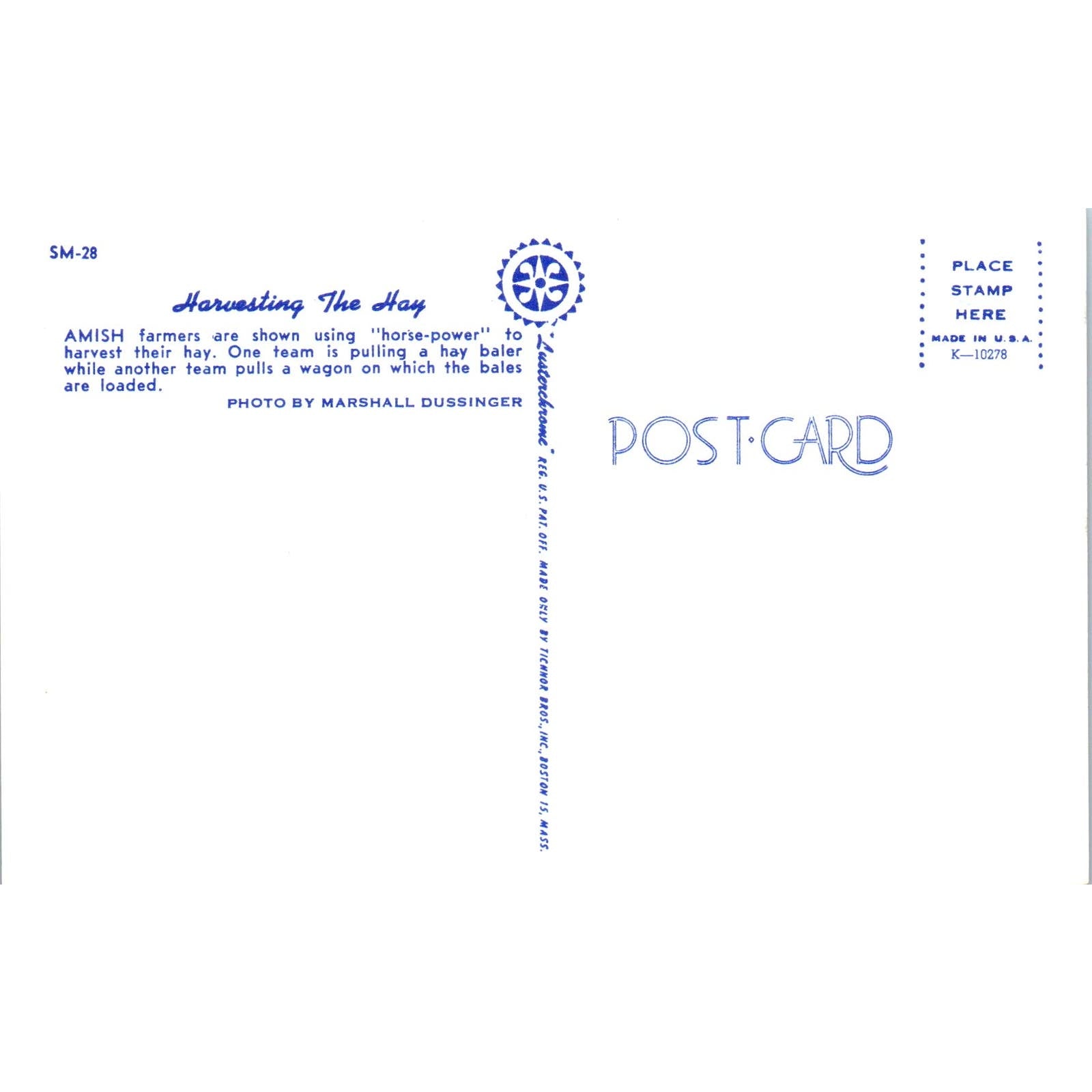 Amish Farmers Harvesting Hay Pennsylvania Dutch Country Postcard PD7