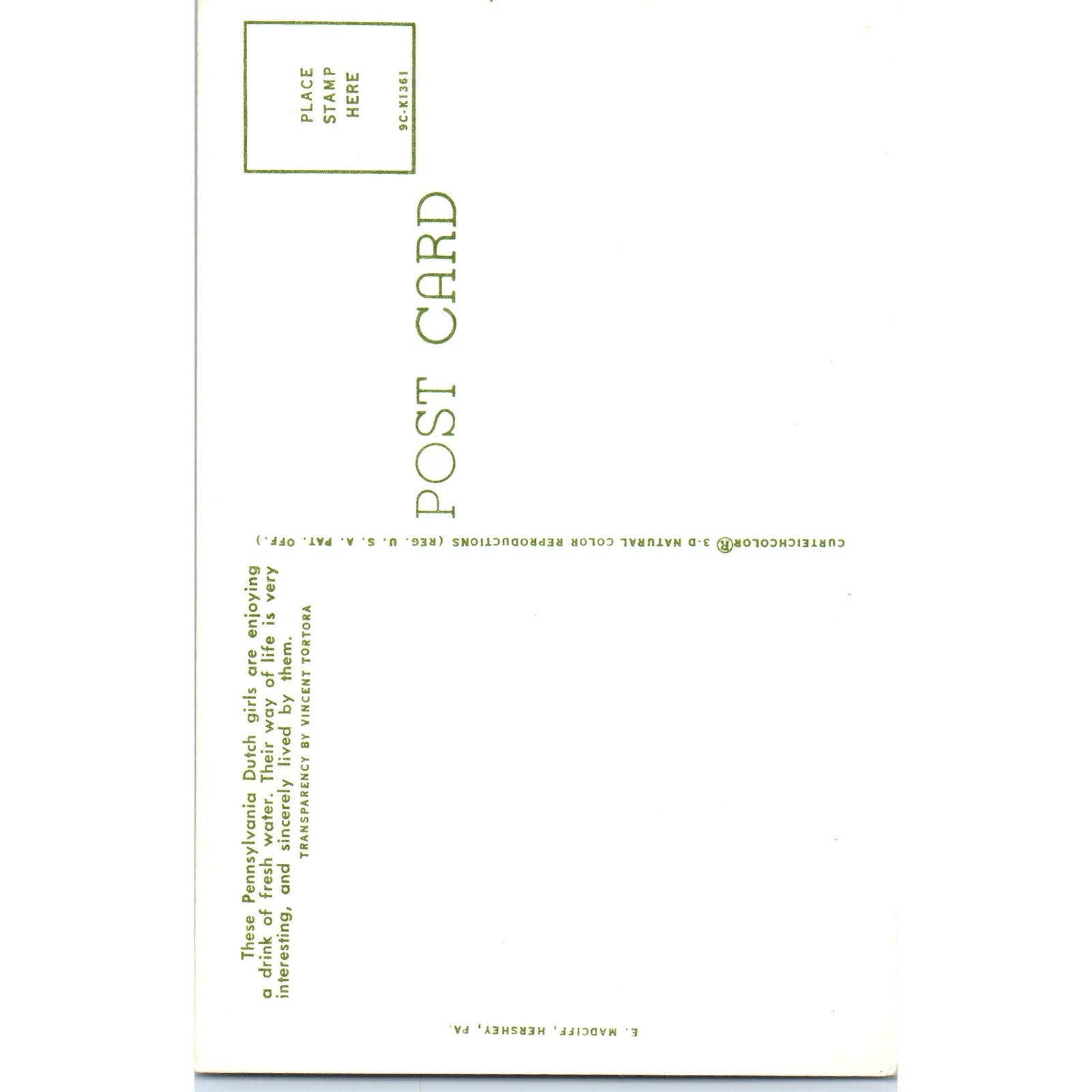 Amish Girls Enjoy a Drink of Water Pennsylvania Dutch Country Postcard PD7