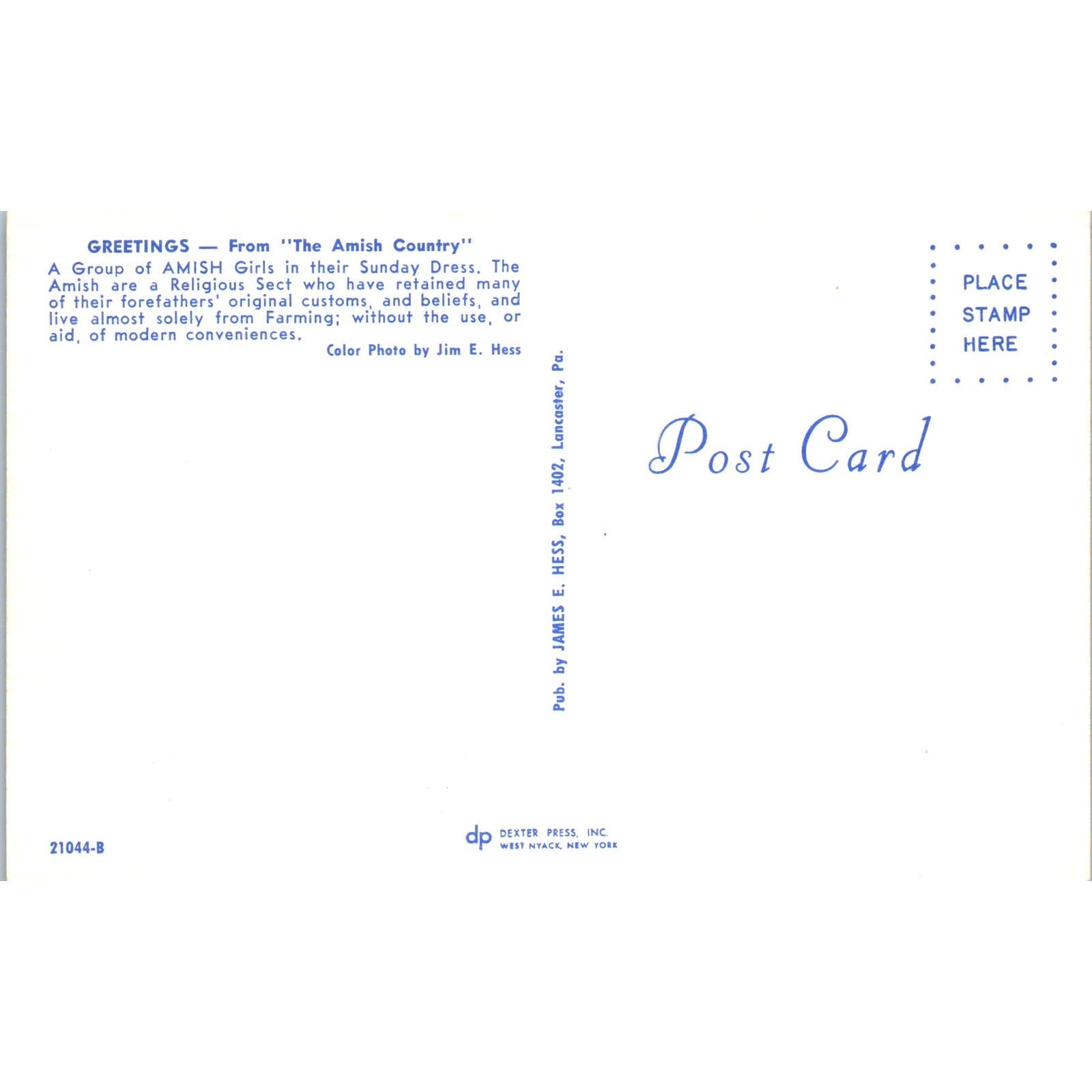 Amish Girls in their Sunday Dress Pennsylvania Dutch Country Vintage Postcard PD5