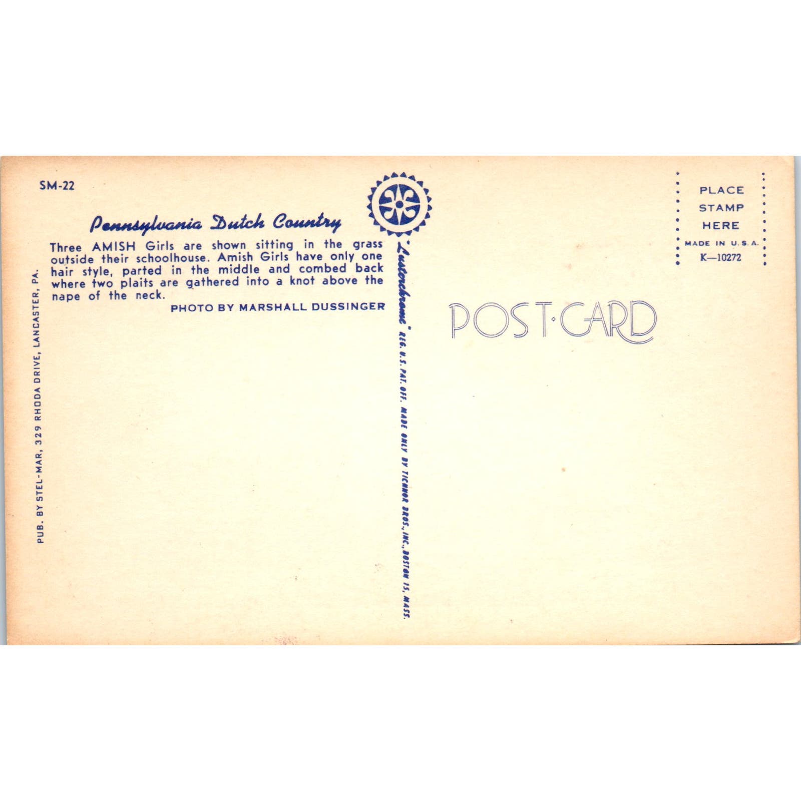 Amish Girls Outside Their Schoolhouse Pennsylvania Dutch Country Postcard PD7