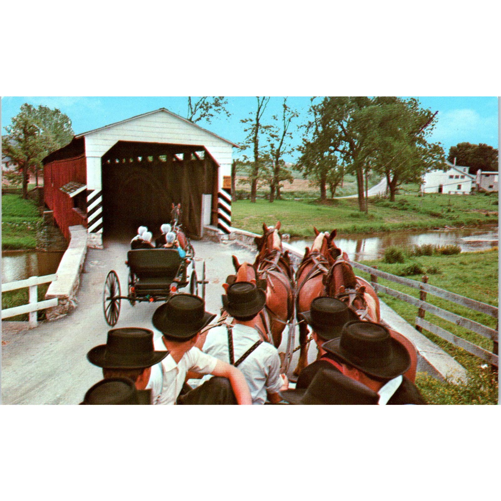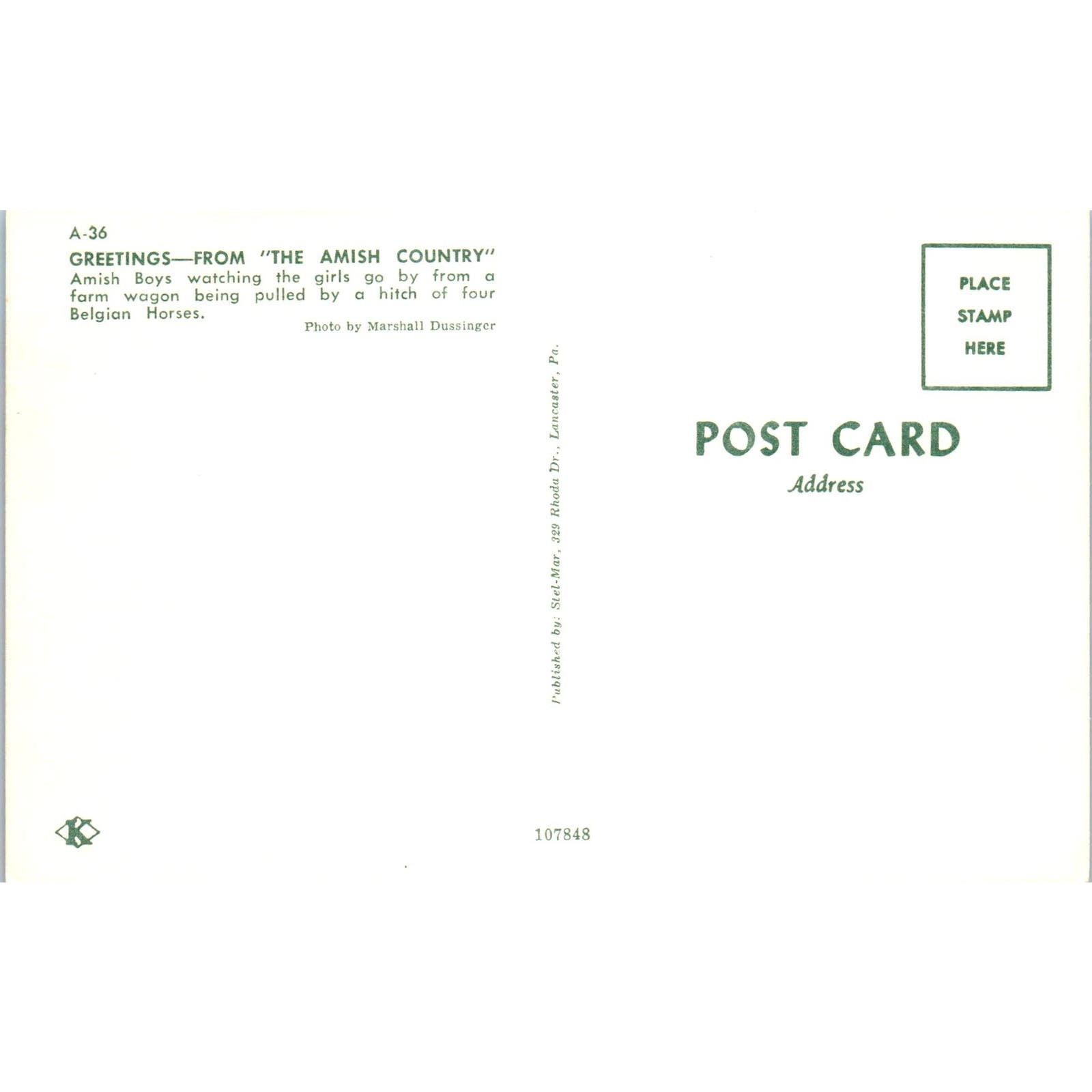 Amish Girls Pulled in Farm Wagon Pennsylvania Dutch Country Postcard PD7