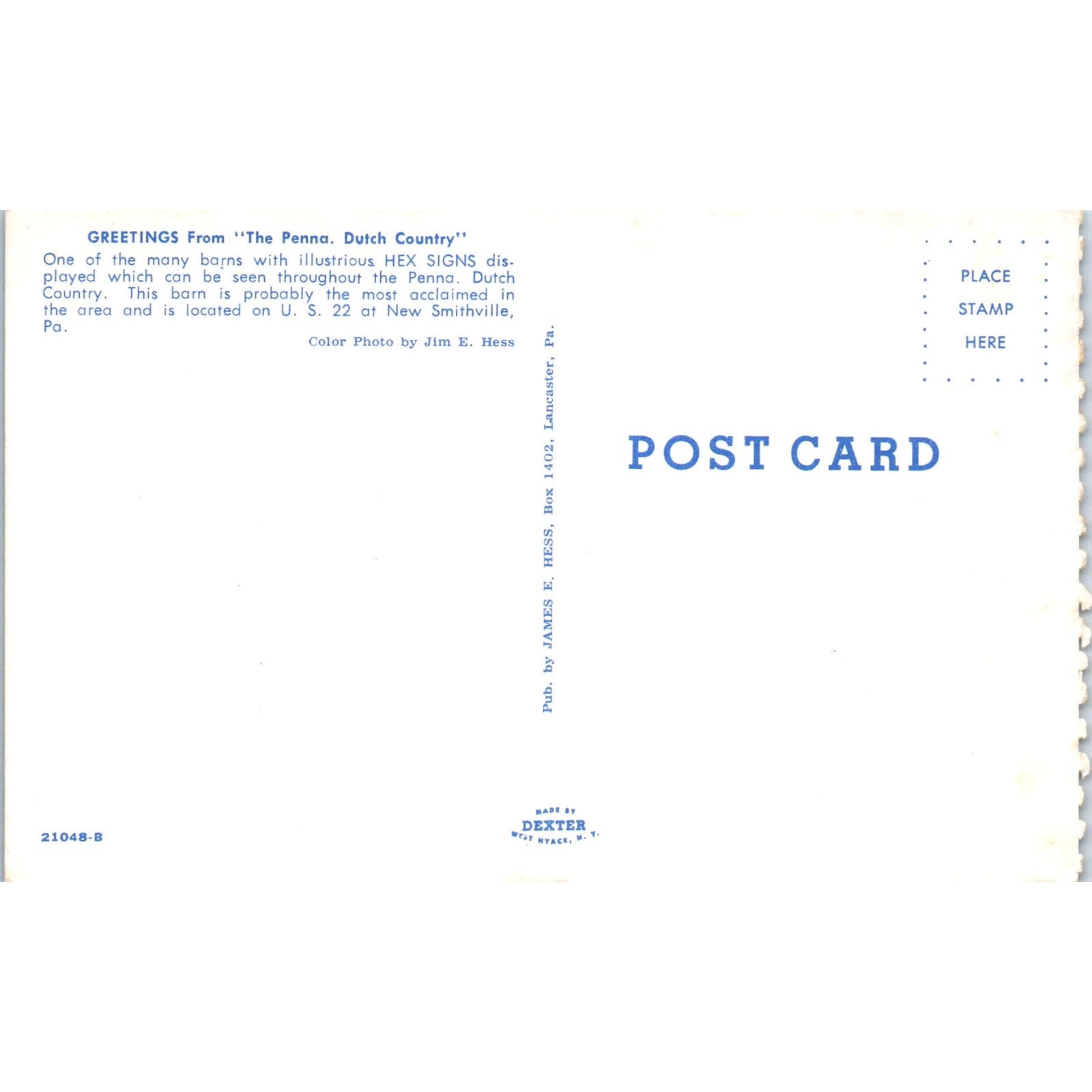 Amish Hex Sign Red Barn Pennsylvania Dutch Country Postcard PD8