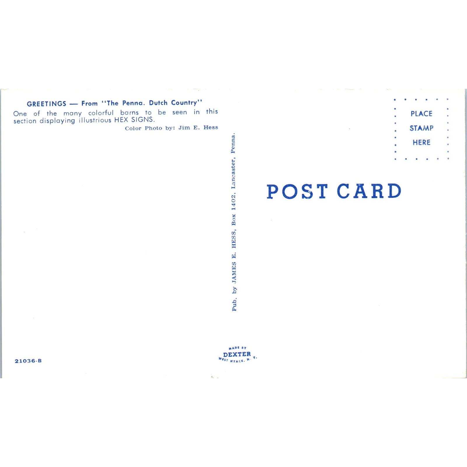 Amish Hex Sign White Barn Pennsylvania Dutch Country Postcard PD8