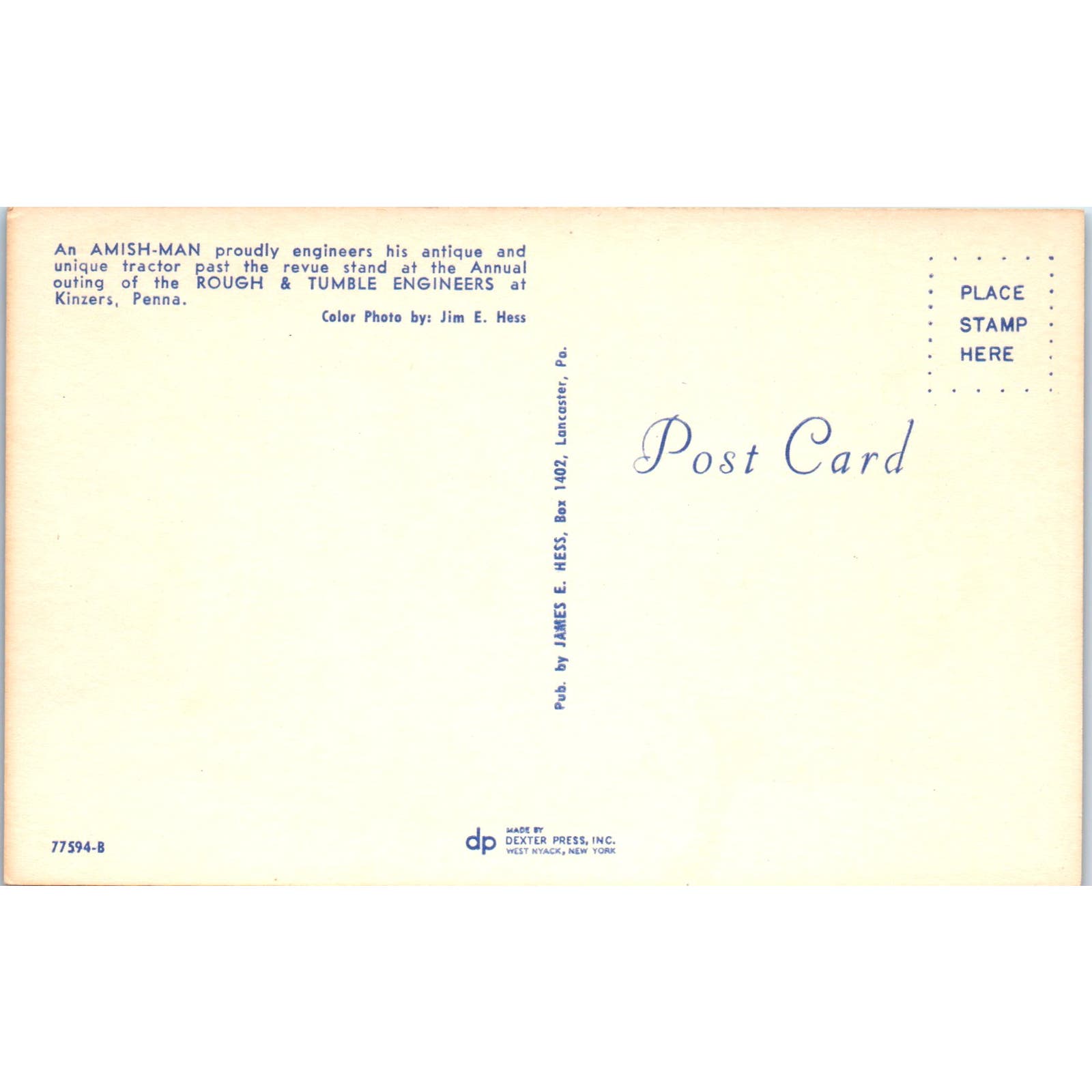Amish Man With Antique Tractor Pennsylvania Dutch Country Postcard PD7