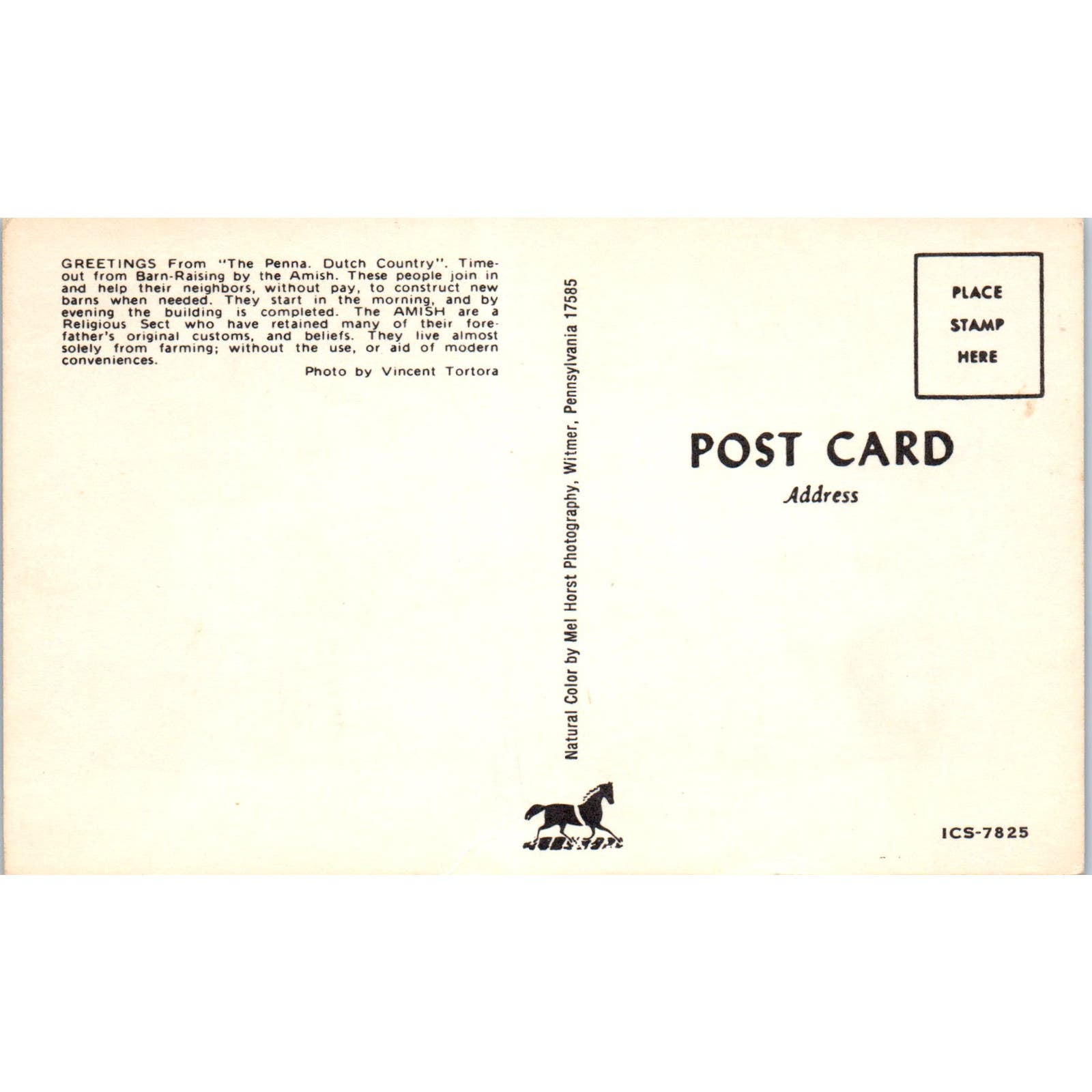 Amish Men at a Barn Raising Pennsylvania Dutch Country Postcard PD8