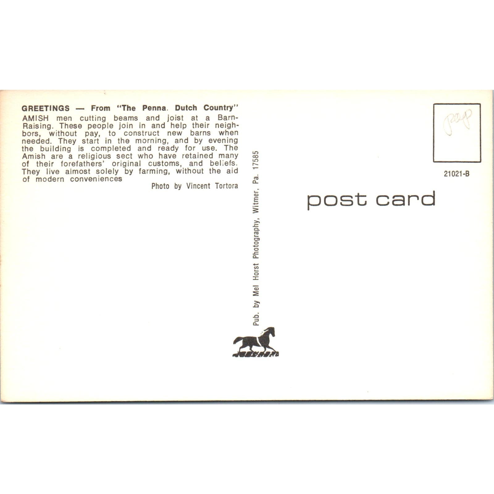 Amish Men Cut Beams and Joist Pennsylvania Dutch Country Postcard PD7