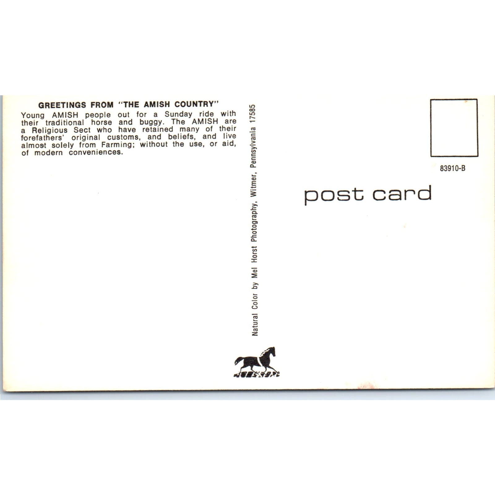 Amish People on Buggy Ride After Church Pennsylvania Dutch Country Postcard PD8