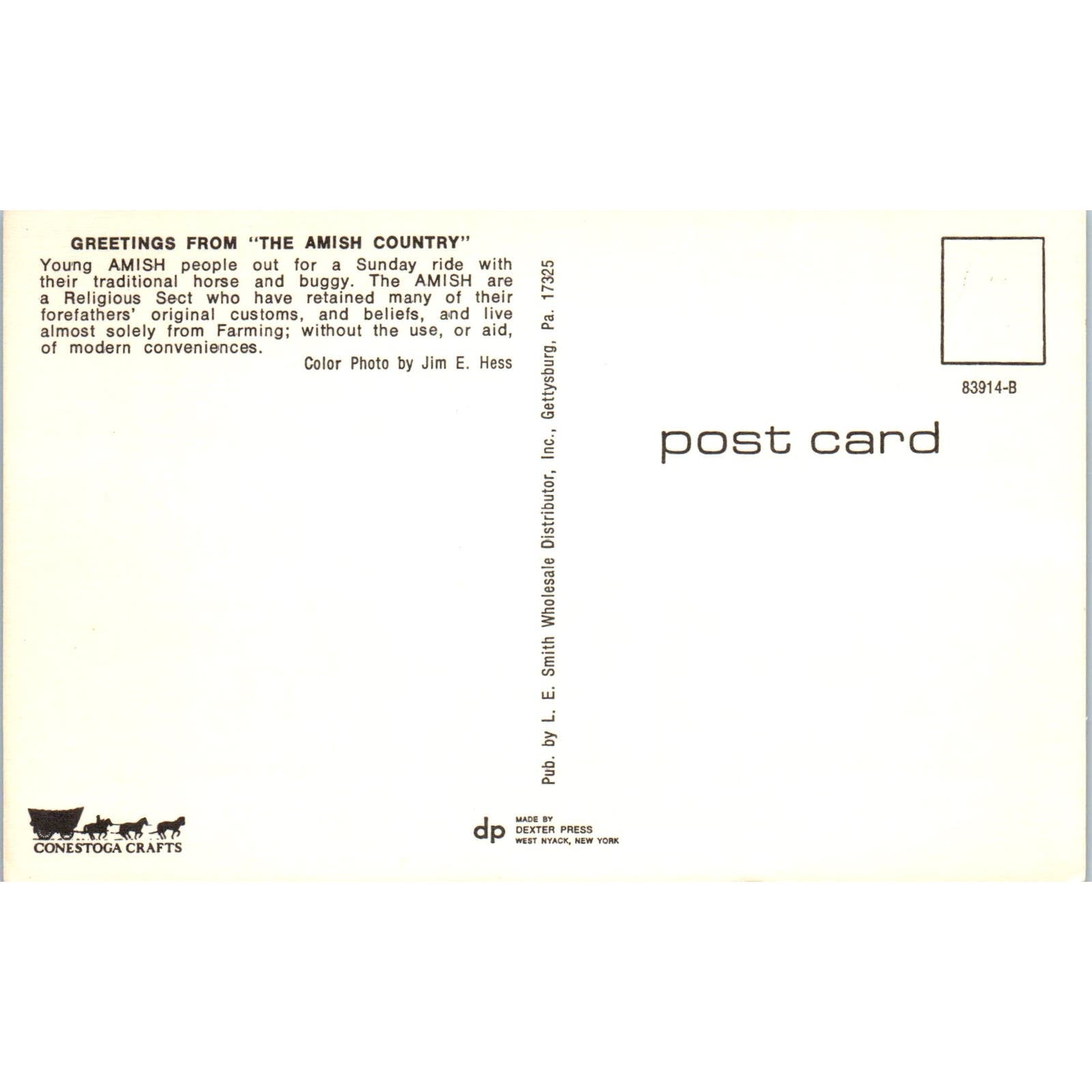 Amish People on Sunday Buggy Ride Pennsylvania Dutch Country Postcard PD7