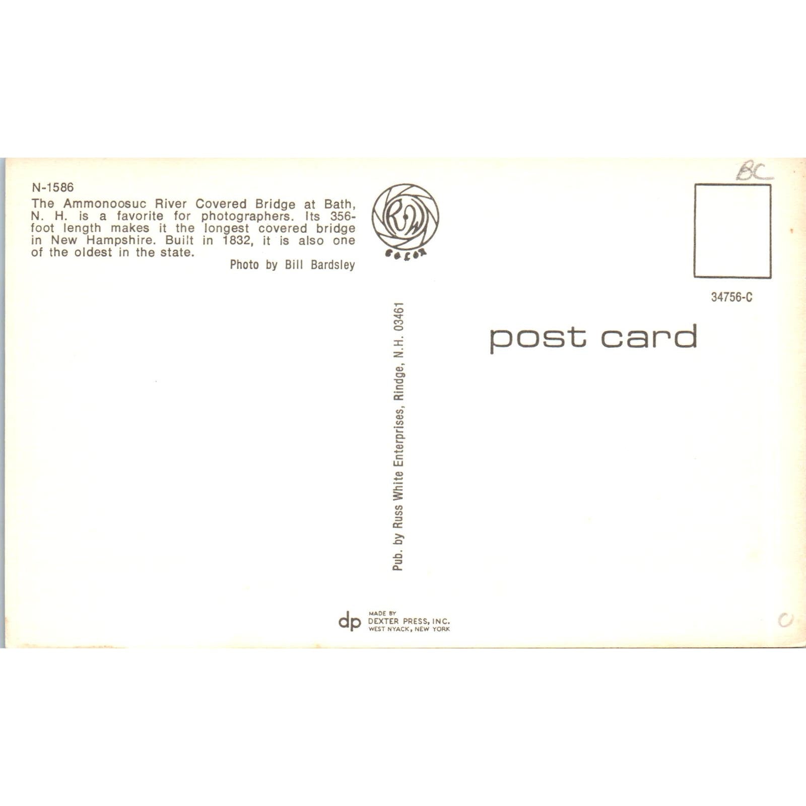 Ammonoosuc River Bridge Bath NH Vintage Covered Bridge Postcard PC14