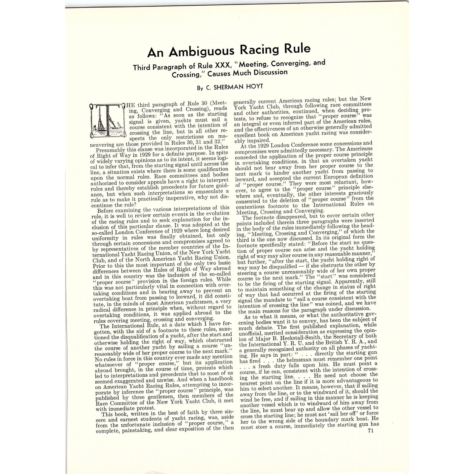 An Ambiguous Rule in Yachting C. Sherman Hoyt 1932 Article V1-4