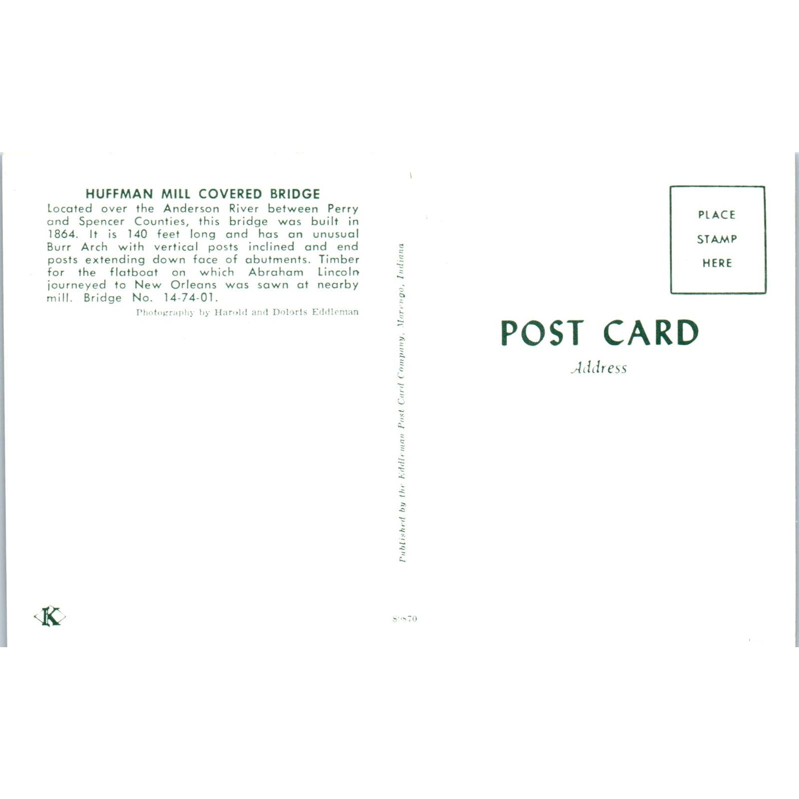 Anderson River Perry Spencer County Huffman Mill Covered Bridge Postcard PB11