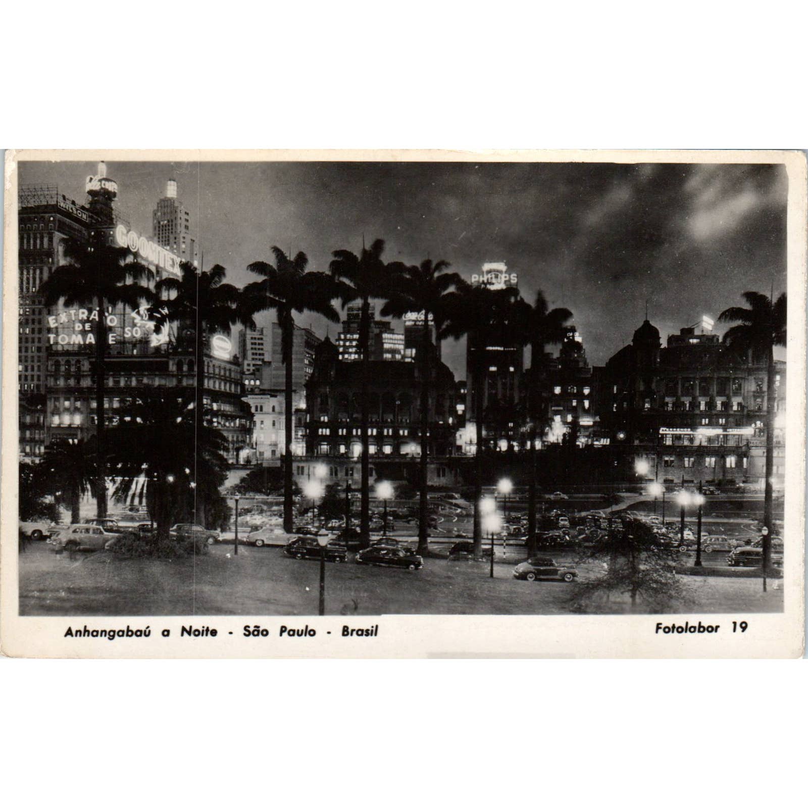 Anhangabaú a Noite São Paulo Brazil c1950 Original Postcard TJ9-P2