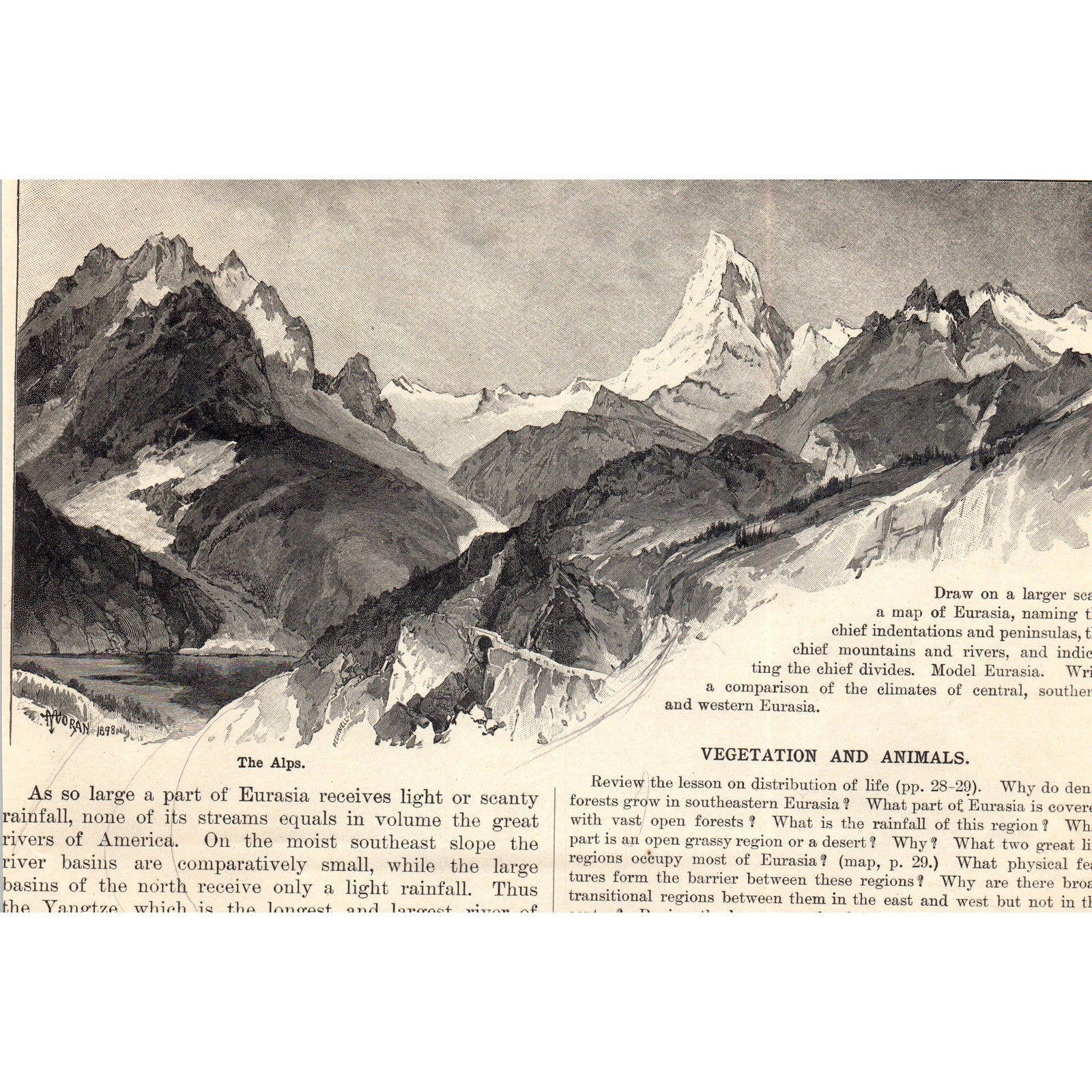 This is measures around 6x8.5" wide. If you need an exact measurement please ask. Original engraving pulled from the book Natural Advanced Geography 1901 Jacques W. Redway Russell Hinman. There may be some light staining, tears, and/or other signs of wear and tear. See pics for condition.