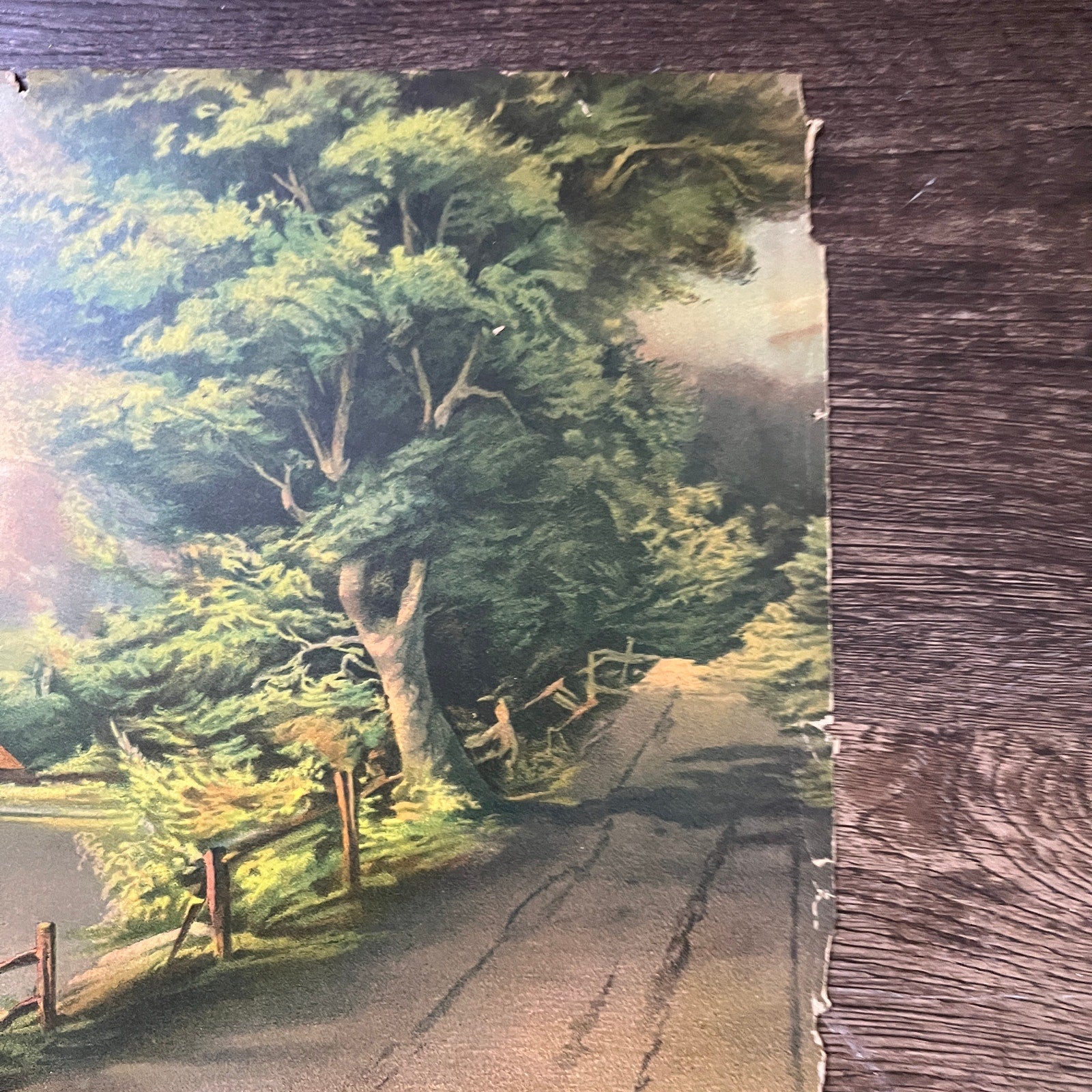 Antique c1920 Country Cottage on a Lake Print 9x12 Vintage Art Print V3