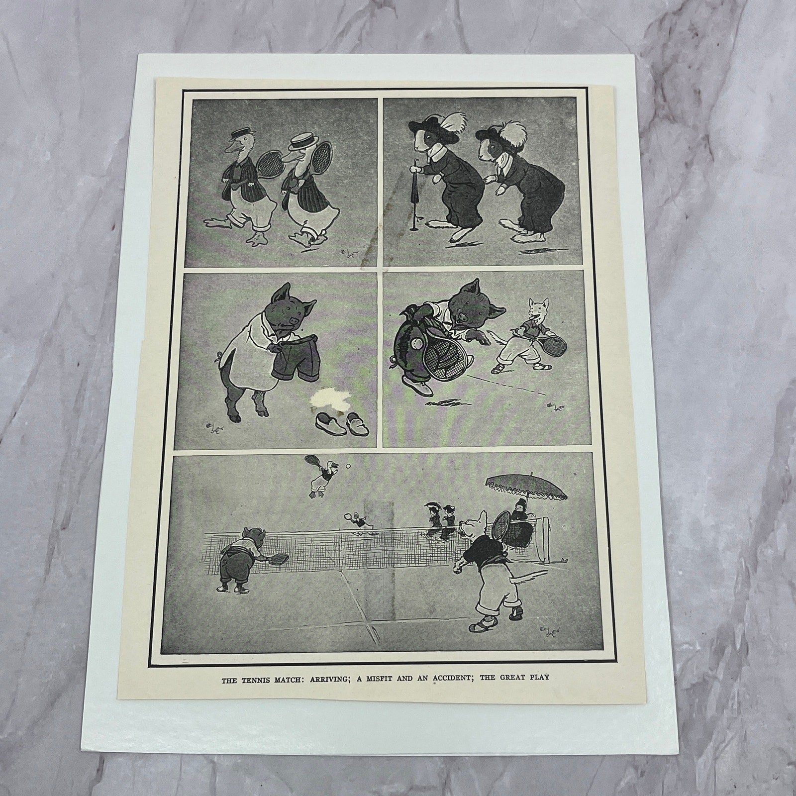 Antique c1920s Comic Cartoon The Tennis Match Anthropomorphic Animals V18