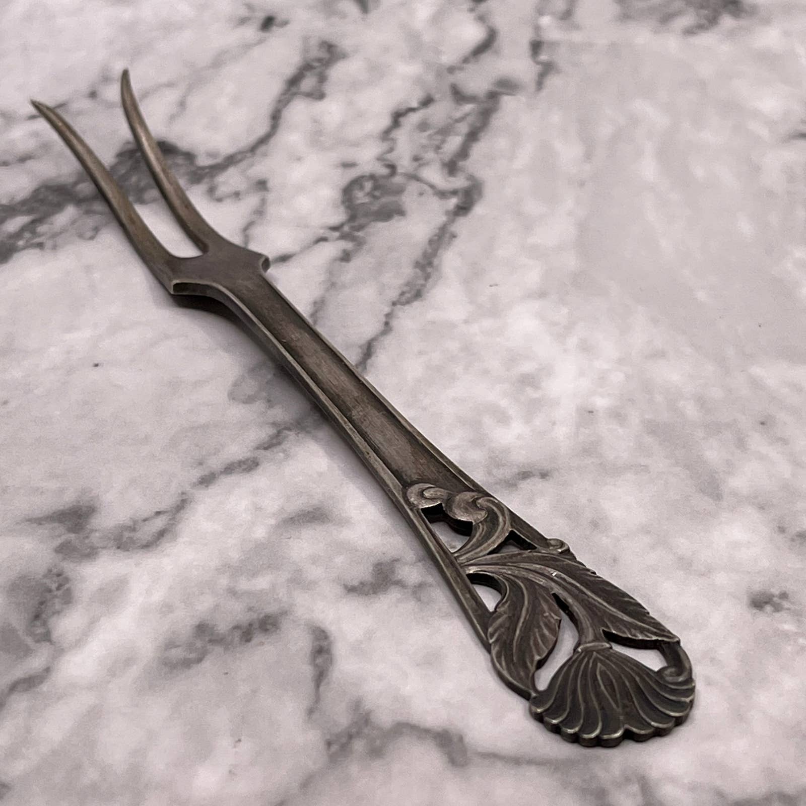 Antique Drip Silver Plate 2 Prong Pickle Serving Cocktail Fork Denmark 6” SA2