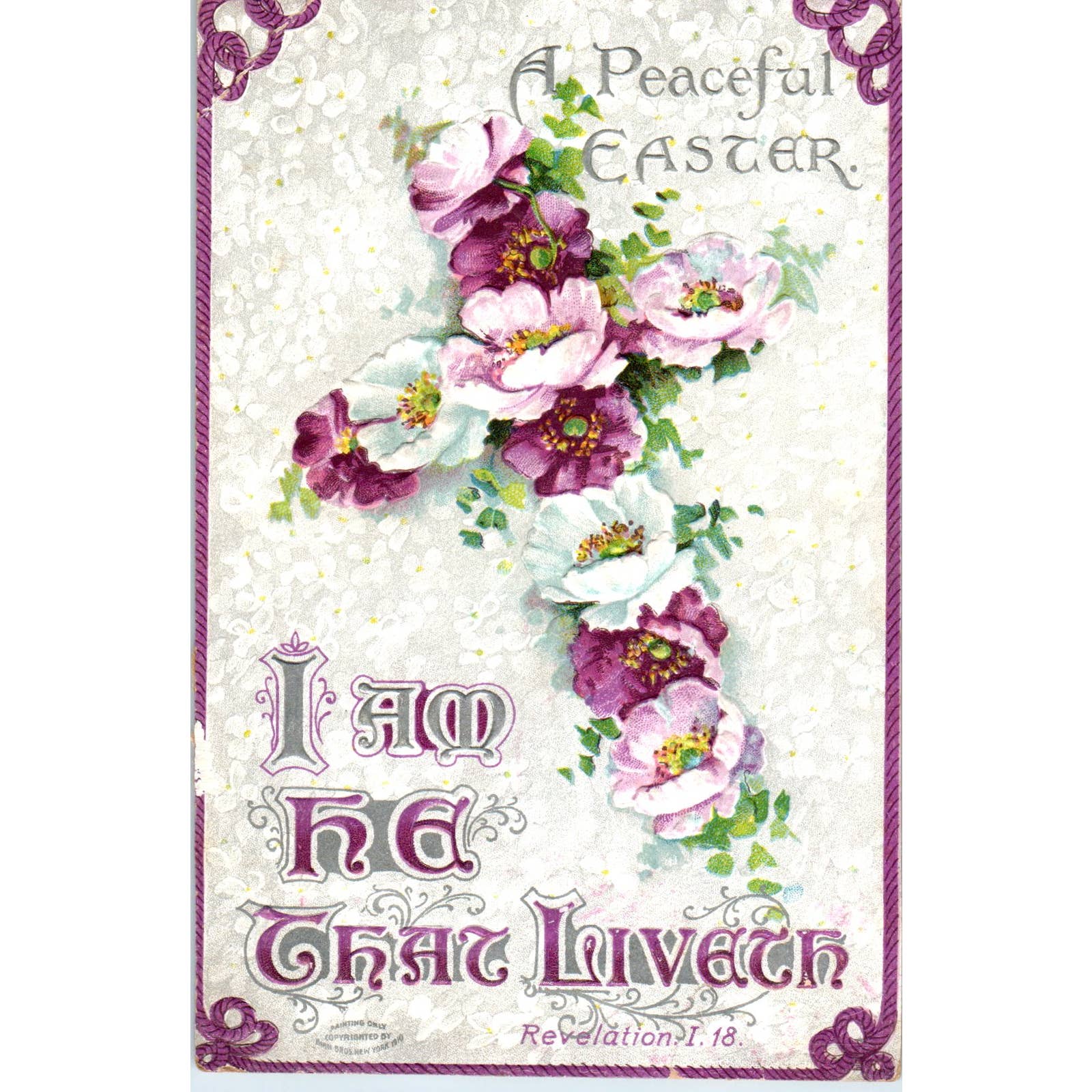 Antique Postcard Easter Embossed Revelation 1:18 I am He That Liveth SF2