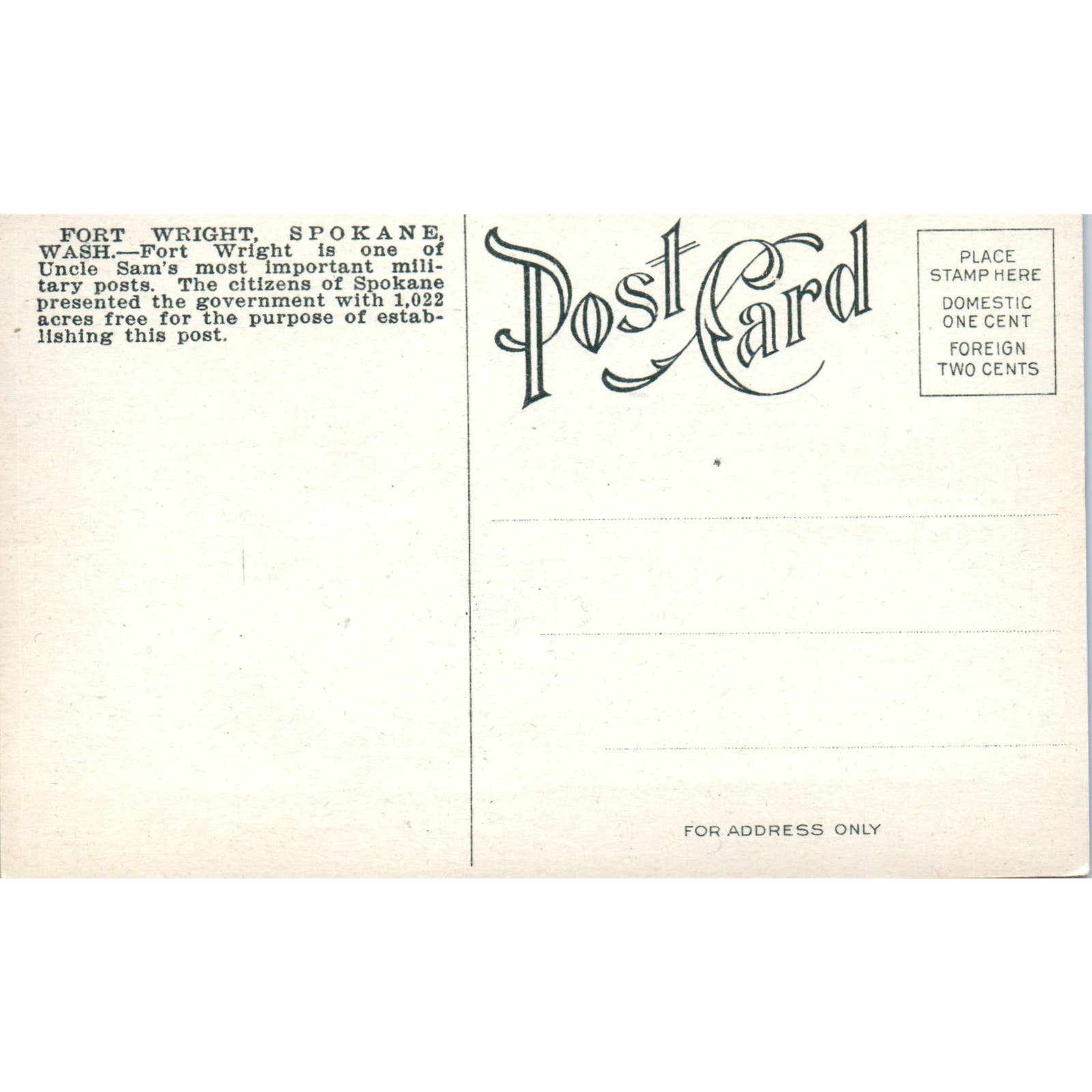 Antique Postcard Fort Wright Spokane Washington TD9