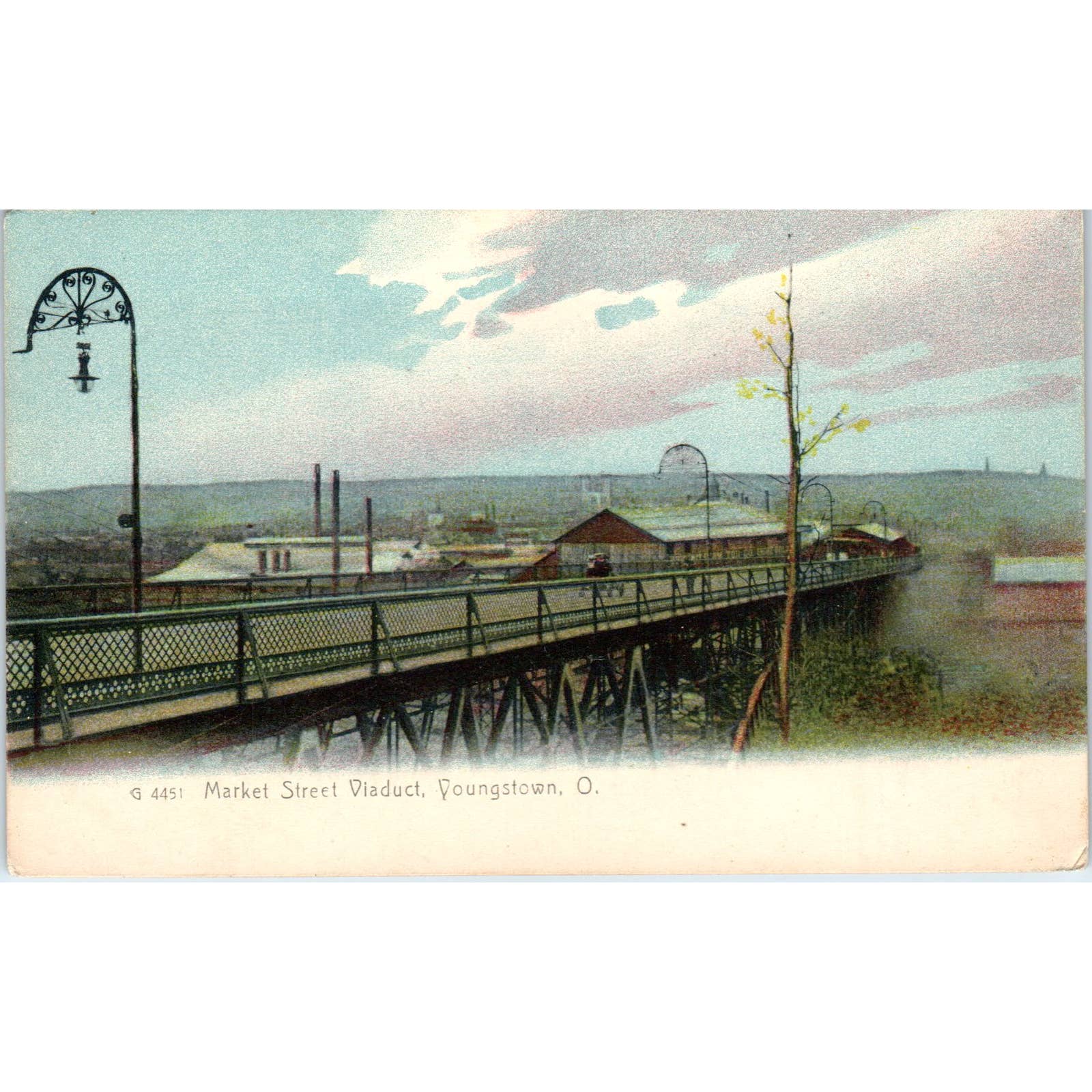 Antique Postcard Market Street Viaduct Youngstown Ohio TD9