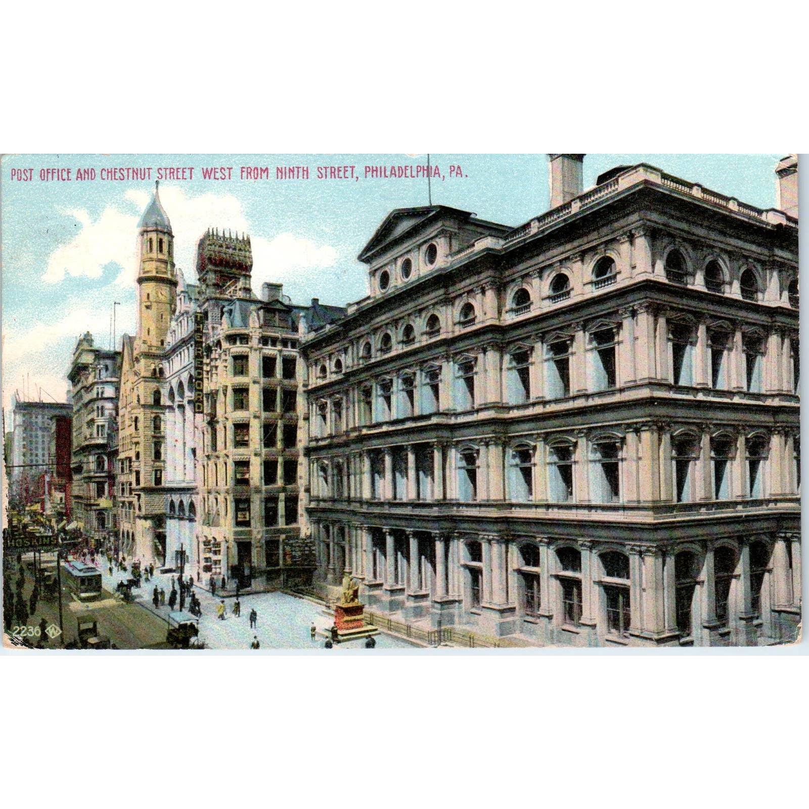 Antique Postcard Post Office & Chestnut St West From 9th St Philadelphia PA TD9-P1
