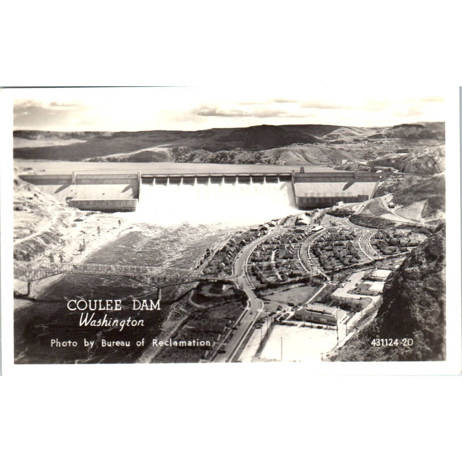 Antique Postcard RPPC Aerial View At Grand Coulee Dam Washington TD9