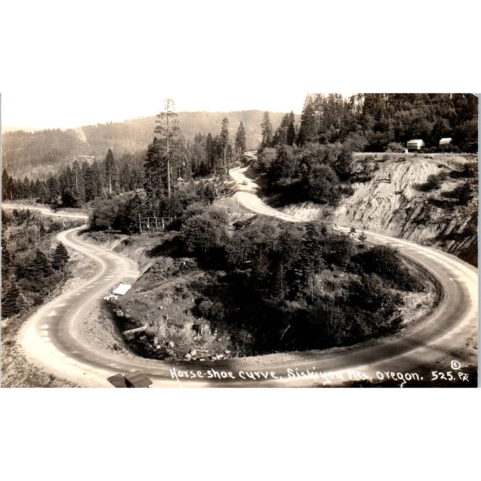Antique Postcard RPPC Horseshoe Curve Siskiyou Mts Oregon SE8