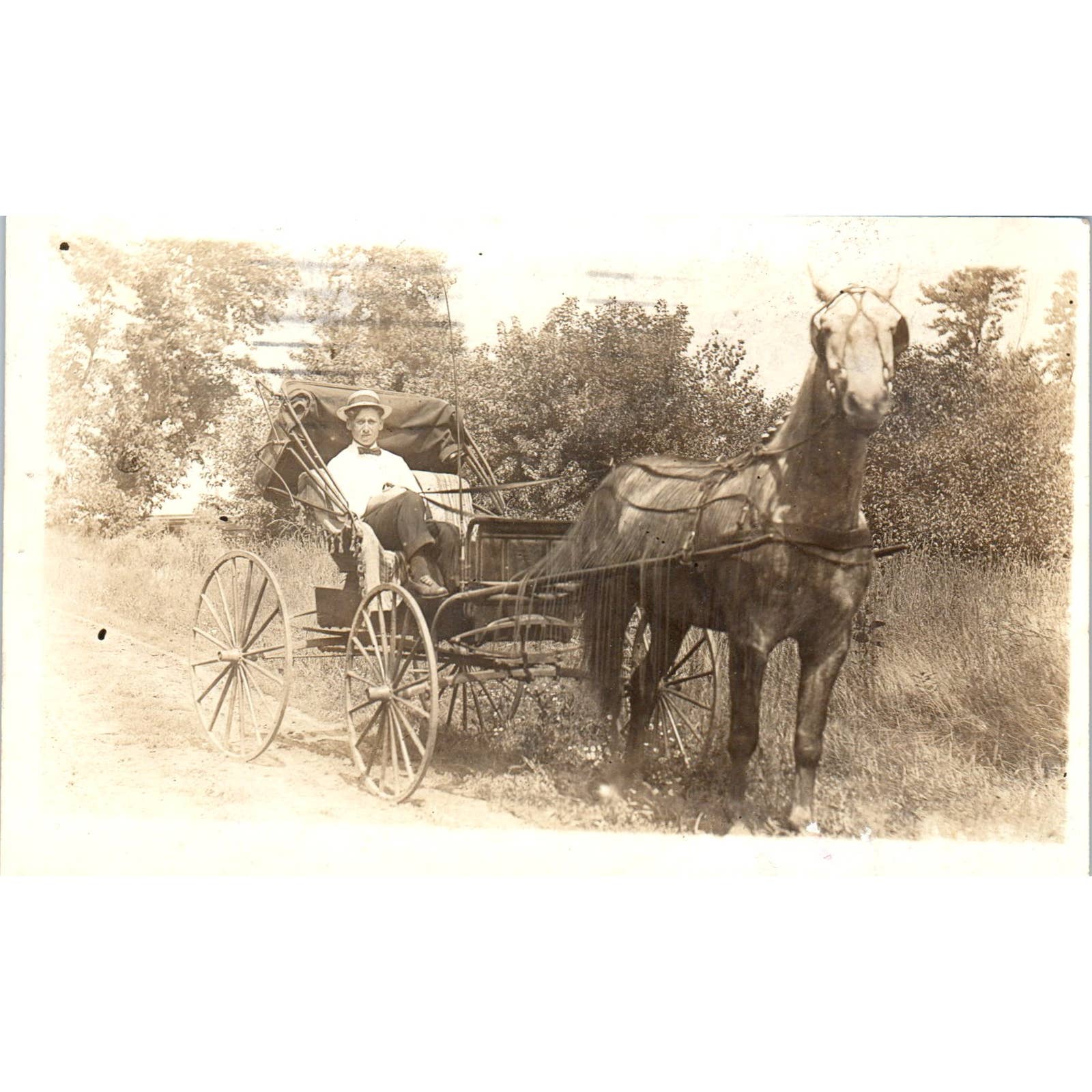 Antique Postcard RPPC Man in Buggy With Horse 1912 SE8