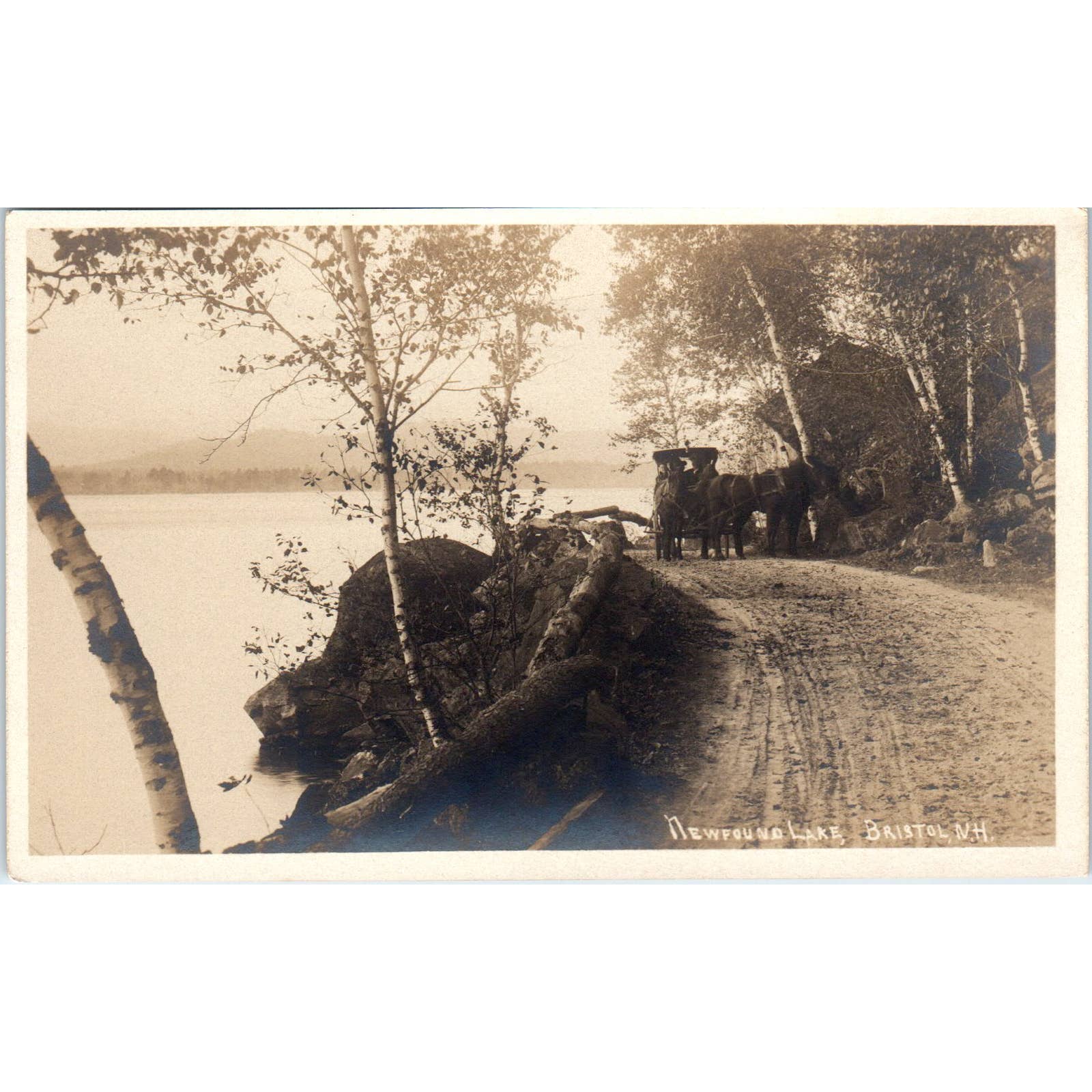 Antique Postcard RPPC Newfound Lake Bristol New Hampshire Horse & Buggy SE8
