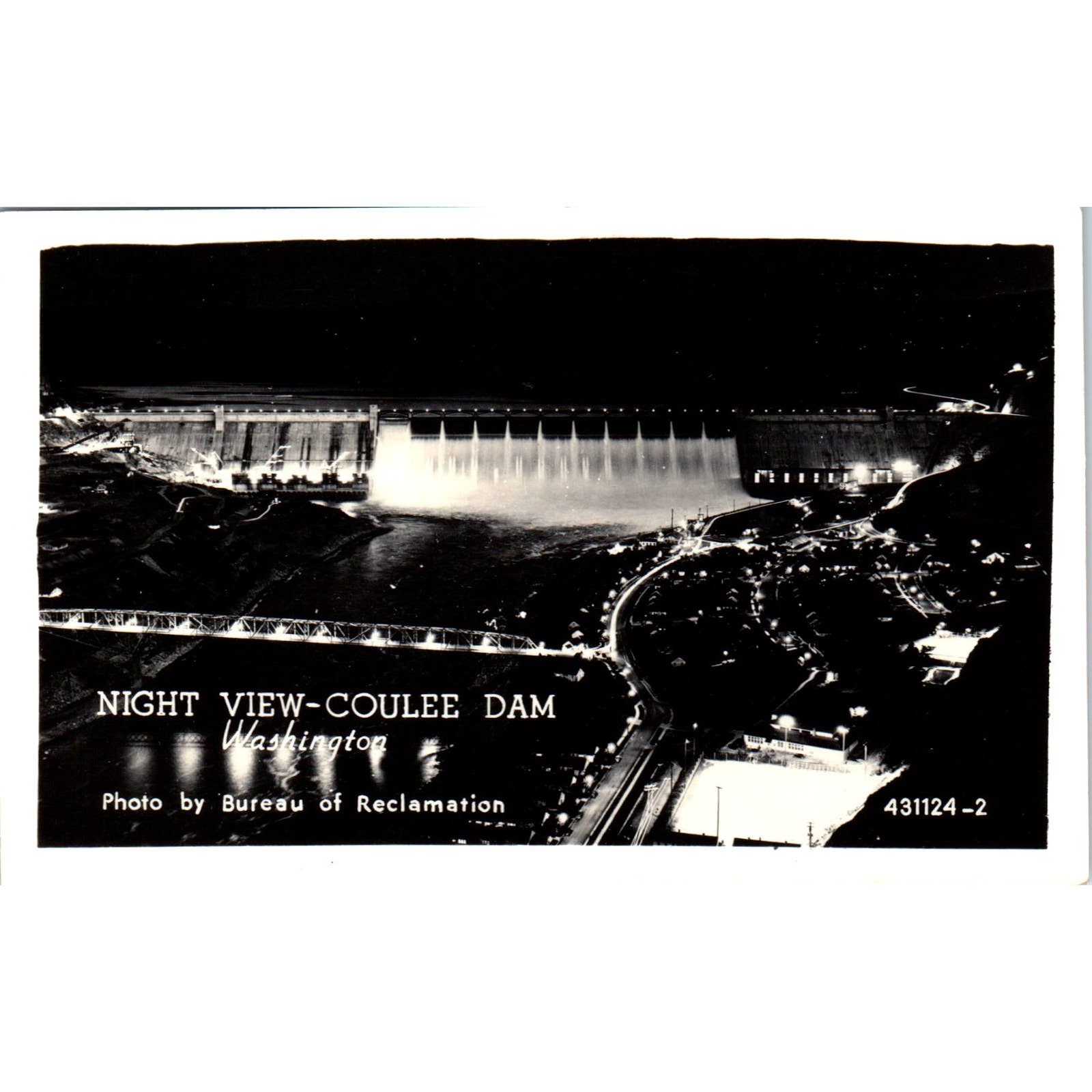 Antique Postcard RPPC Night View of Grand Coulee Dam Washington TD9