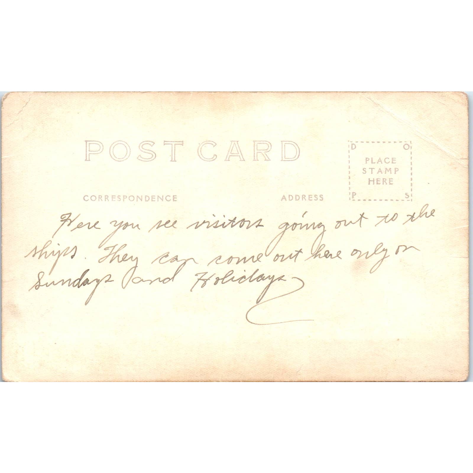 Antique Postcard RPPC Visitors Going Out To The US Navy Ships SE8