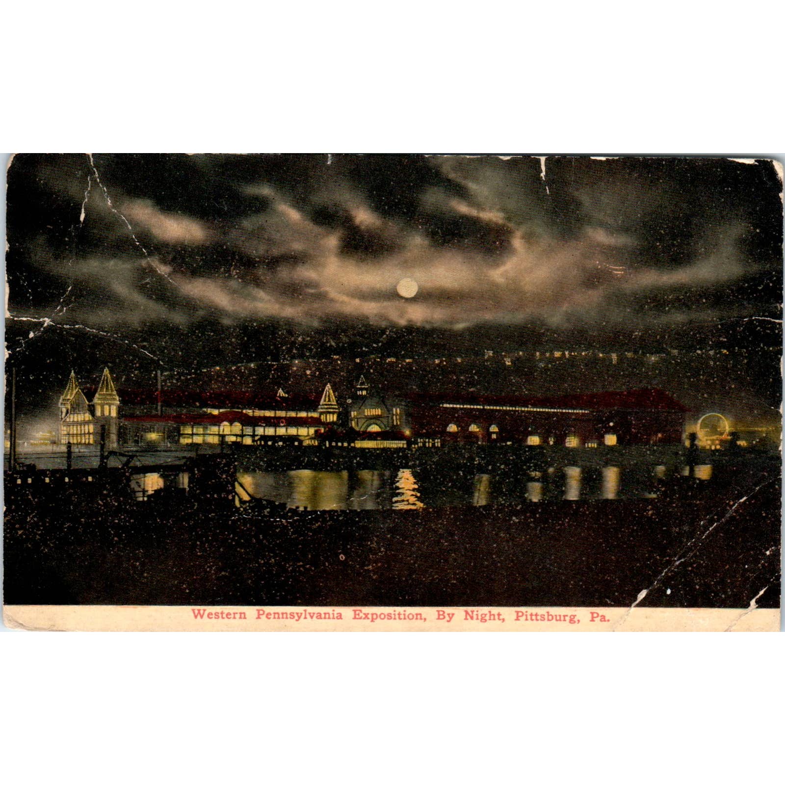 Antique Postcard Western Pennsylvania Exposition By Night Pittsburgh PA TD8-P2