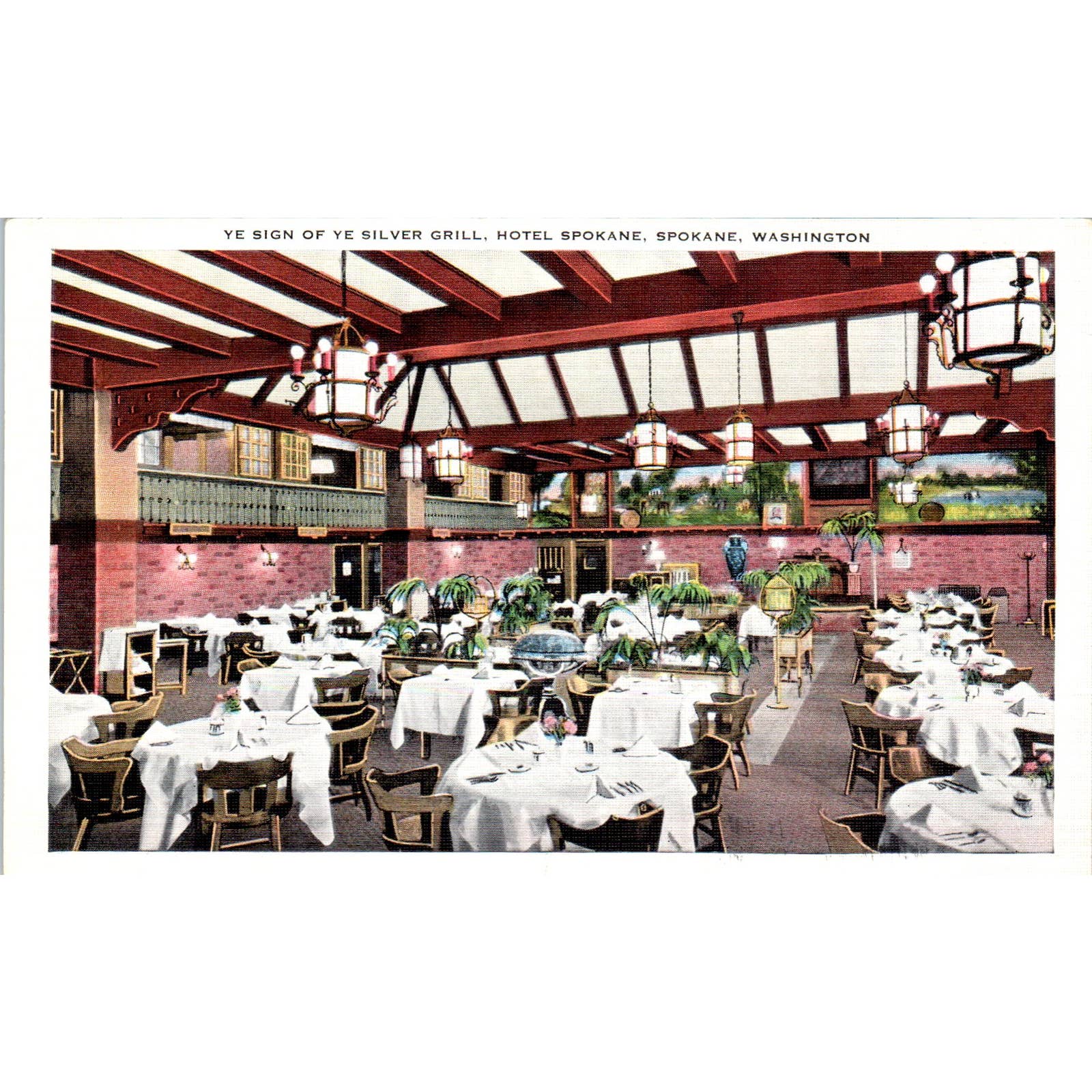 Antique Postcard Ye Sign of Ye Silver Grill Hotel Spokane, Spokane Washington TD9