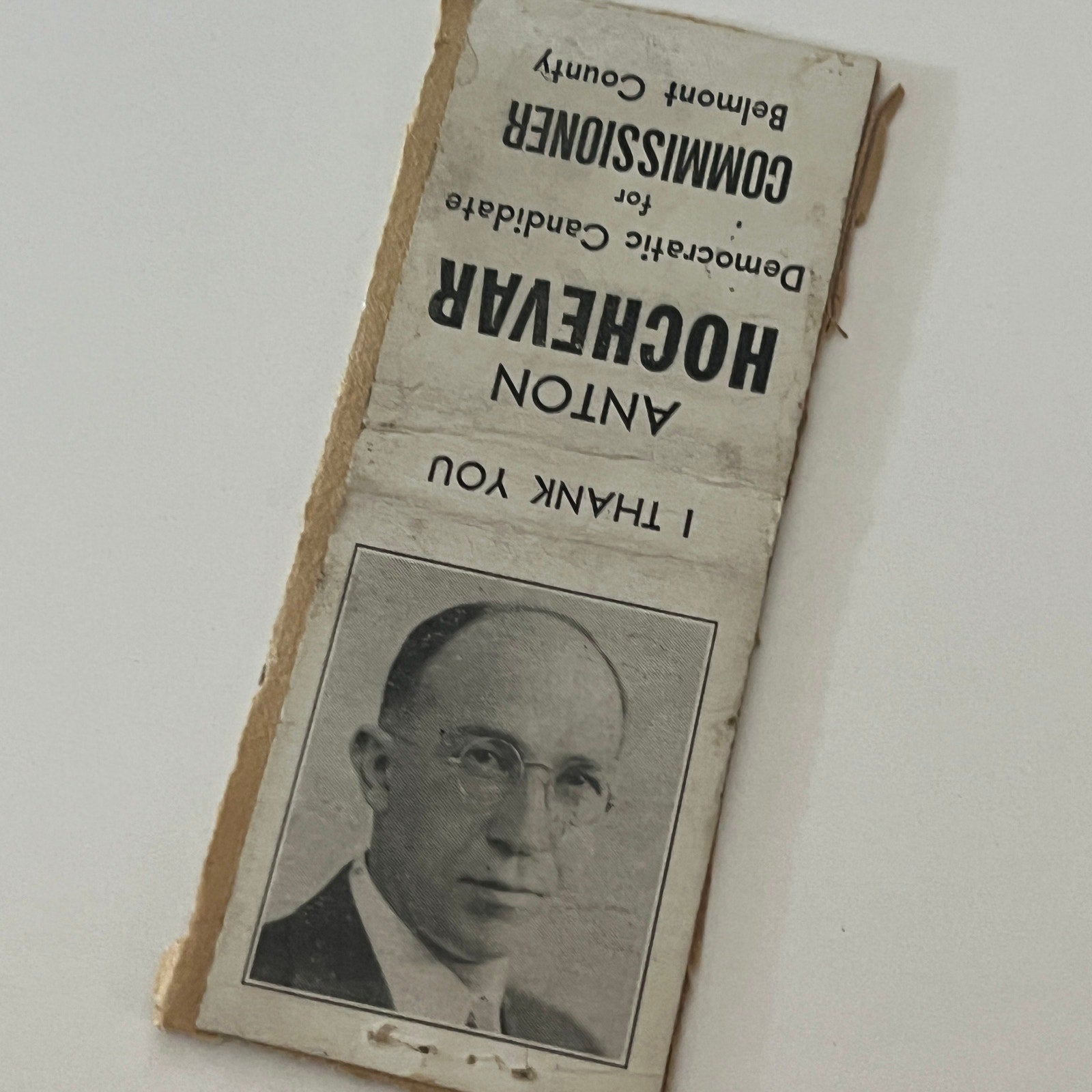 Anton Hochevar Democrat for Belmont County Commissioner Vintage Matchbook Cover TB6-MB2-4
