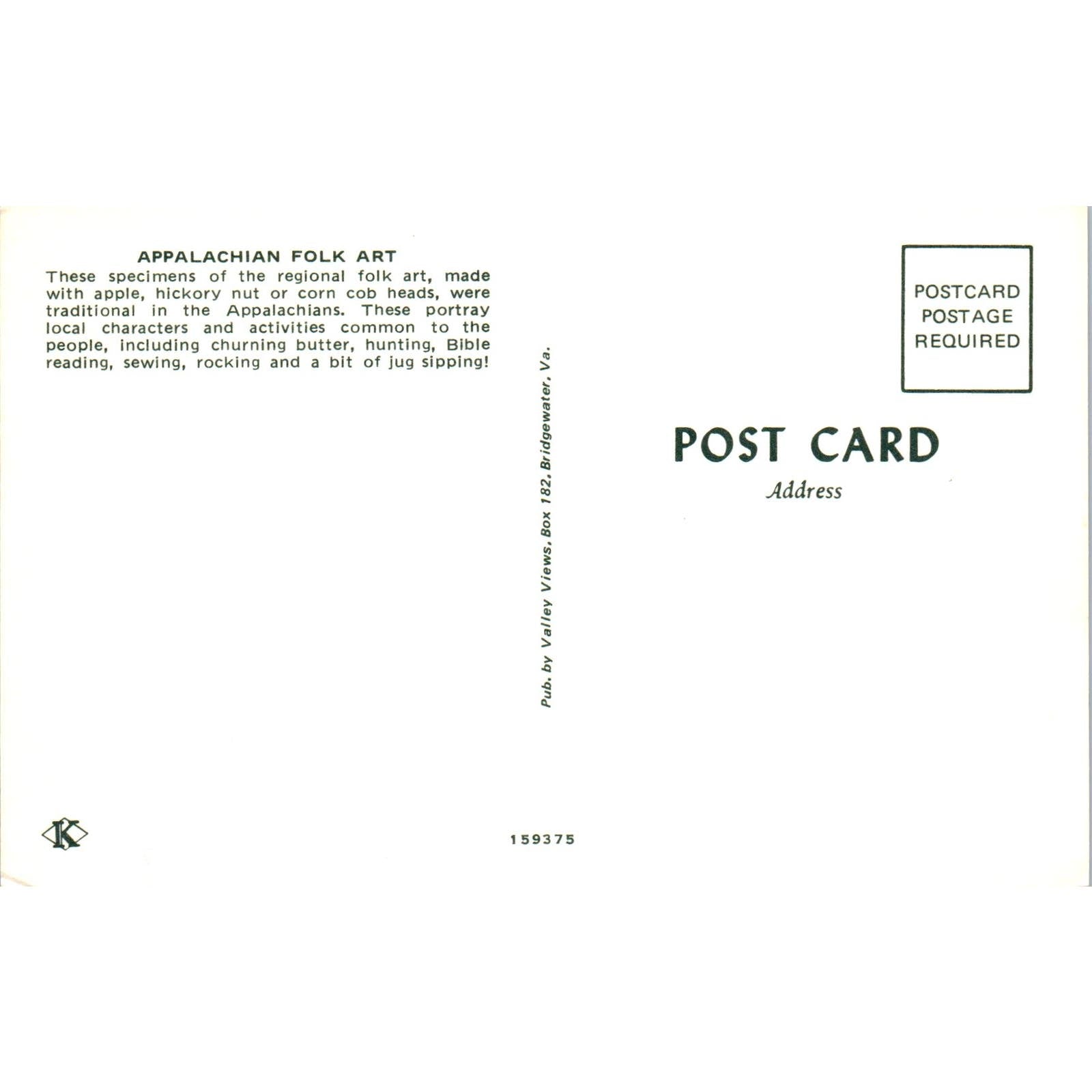 Appalachian Folk Art Hickory Nut Corn Cob Head Doll Collection Postcard PB7