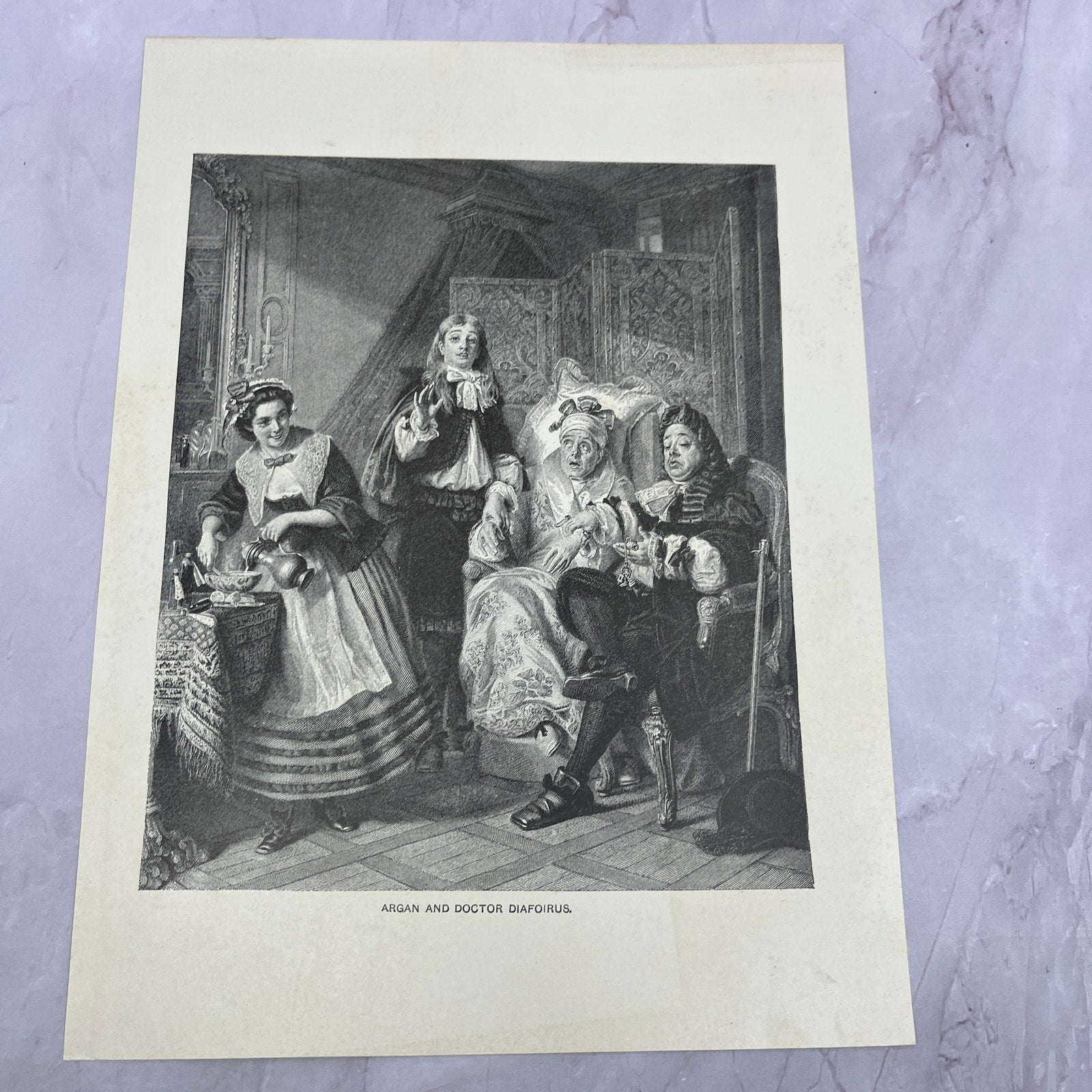 Arga and Doctor Diafoirus Antique 8.5x11.5" Engraving Art Print V20